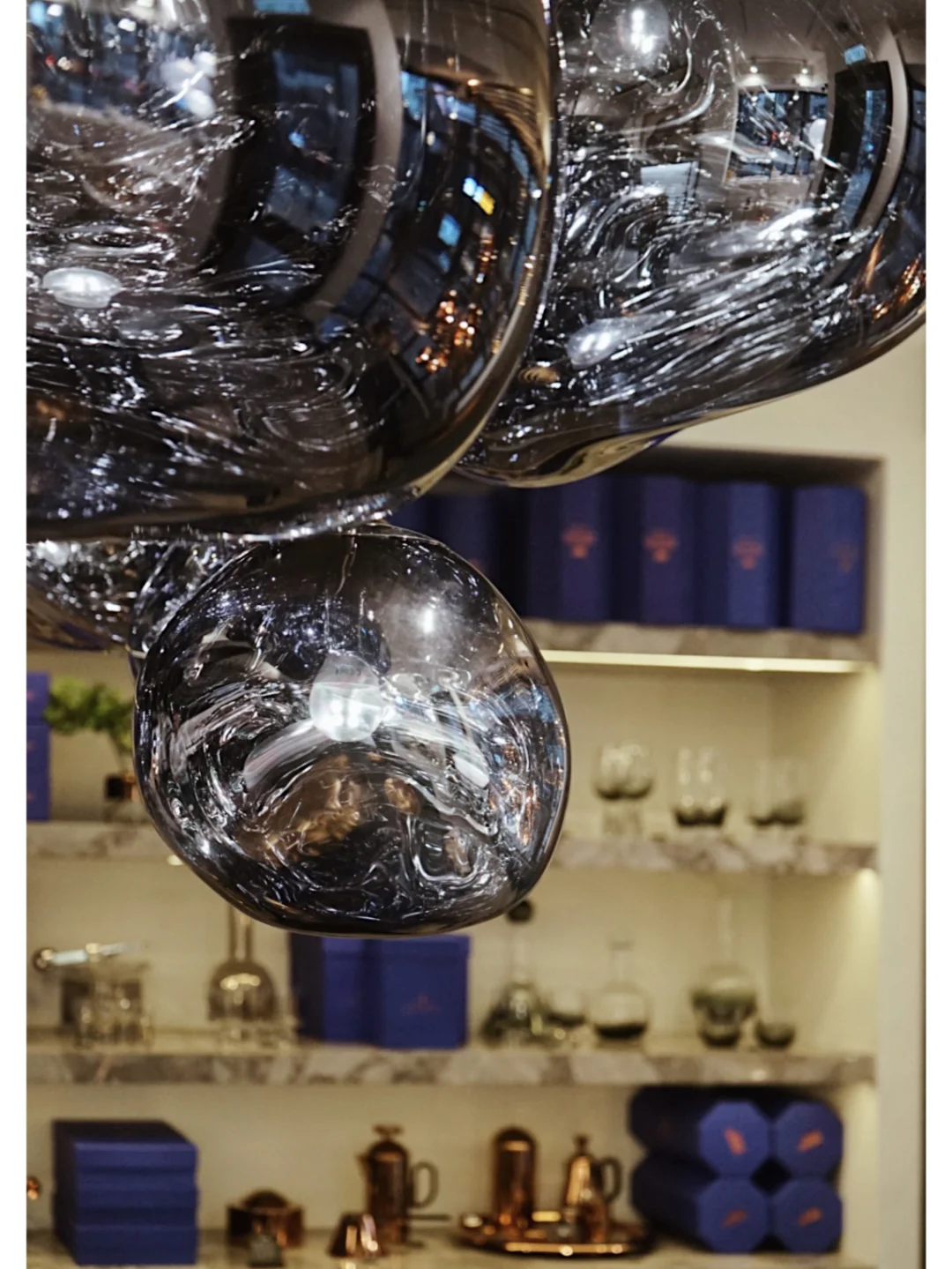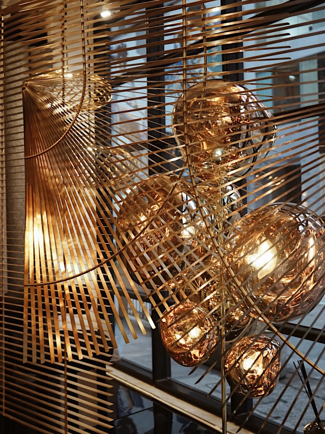🔲香港的Tom Dixon是继伦敦、纽约、LA和东京后的第五家Flagship, 在中环涂鸦墙的对面。一楼的橱窗处是金色的圆形灯,夜幕降临,和黑色墙面搭配,非常eye-catching. 悬挂的金属吊灯,不规则的云石桌子,几何形的扶手椅,蜡烛/香薰/摆设/餐具…实际上,所有的一切无不充满现代感。走上黑色的金属扶梯,便是二楼的咖啡店。这位国际公认的金属玩具果然将金属元素应用在每个角落,连咖啡菜单的字母都是金属材质,但的确营造了工业风的艺术感。