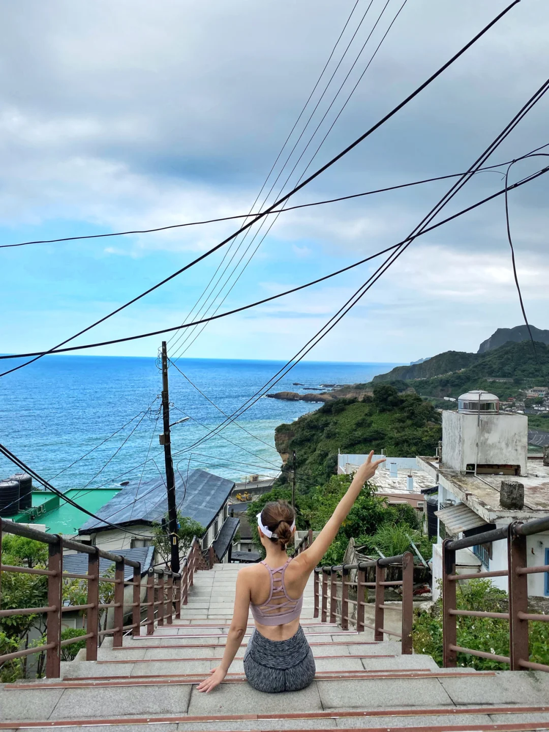 如图2所示,楼梯位便是IG上很多台湾网美的打卡照,可俯视阴阳海,很小众,也很有日本仓濂的感觉。加一个日系的滤镜,照片就会很美。但我的照片没有加滤镜,用snapseed调了光。