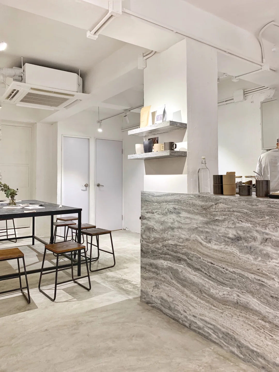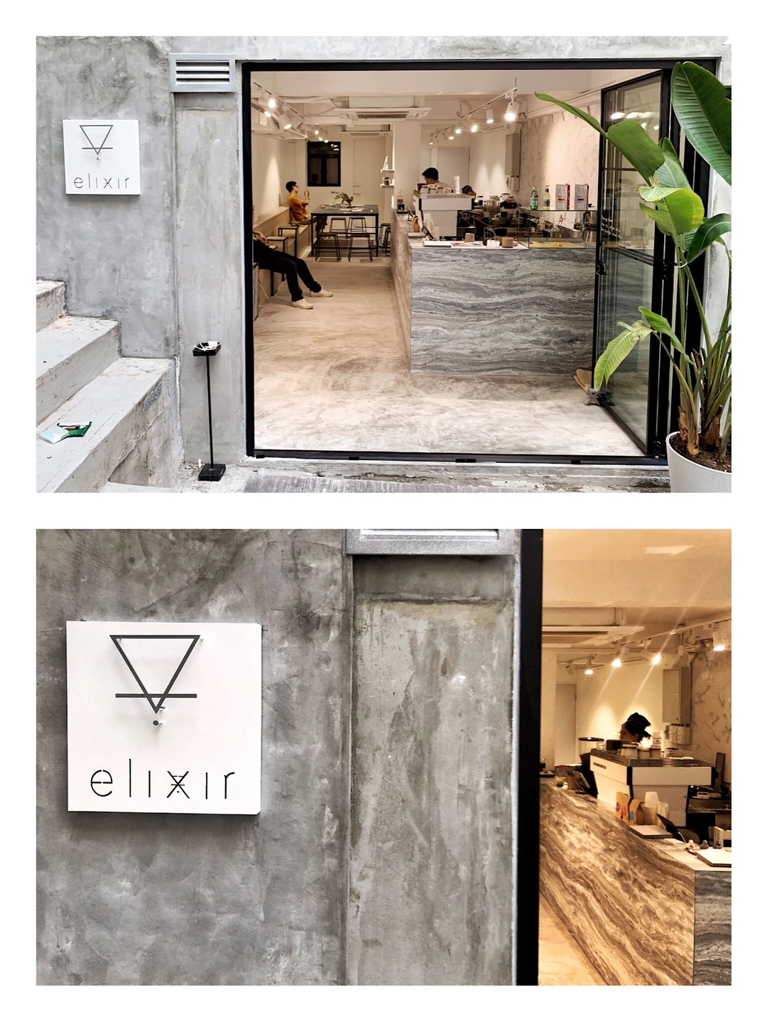 ☕️这家上环的Elixir上周新开。同样保留了极简工业风。灰调水泥墙身,门口的台阶是吸引位,三俩好友席地而坐,很是惬意。店里的装修主要是通透明亮的设计,小桌架在木凳上,桌子位子虽小,可也拉近了和同行的喝咖啡的人之间的距离。里面是一张大桌,桌面很像油彩涂鸦,很适合作拍照背景。