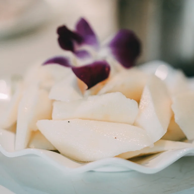📍竹荪,应该是在竹林多的地方比较盛产,原本清淡的椰子鸡,煮上竹荪变得更加鲜味,加上带着青柠味的酸辣调料,可口诱人,每次必点,一点就是两份。