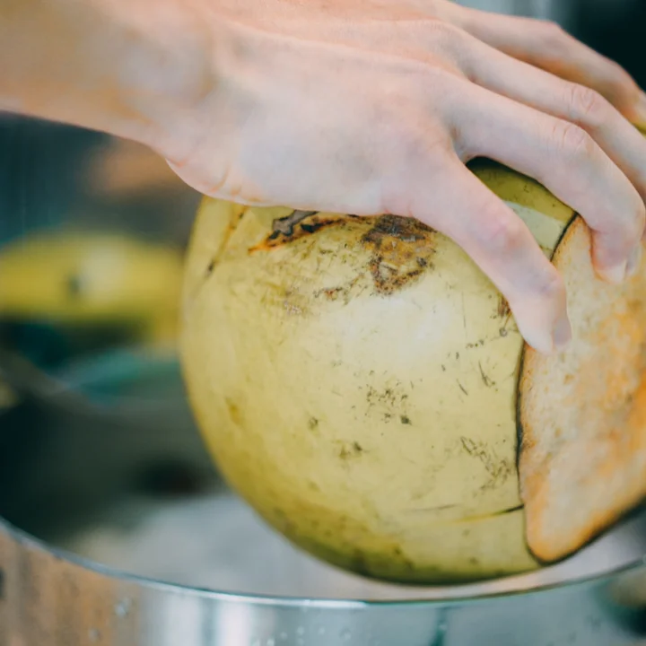 店里装修简约,还没到12点便开始排队,在店面的左侧,可以看到堆着一堆的青椰子,每个火锅都是由两个青椰子水加矿泉水煮出来的,用料极其讲究,味道自然也不会差。