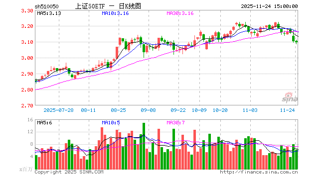 11月24日,上证50ETF(510050)跌0.23%,成交额19.15亿元。当日份额增加4.94亿份,最新份额为576.92亿份,近20个交易日份额减少3.84亿份。最新资产净值计算值为1785.03亿元。