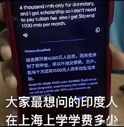 这位印度女学生凭自己的真本事被保送到了上海的大学,由于成绩优异学费全部免除,而且每个月会有1500元的生活补助到账,唯一的花销大头就是一年4000块钱的住宿费,其他也就寥寥无几了,因此觉得来到上海留学并没有什么压力。 有网友也晒出了自己家的孩子在上海上大学的花费,住宿费一年1200,学费一年8000,生活费一个月最少2000,这是最基本的吧,总体来说就是住宿费比留学生少了一半,但是还要交学费啊,而且也没有1500的生活补助,看来差距还是不小。