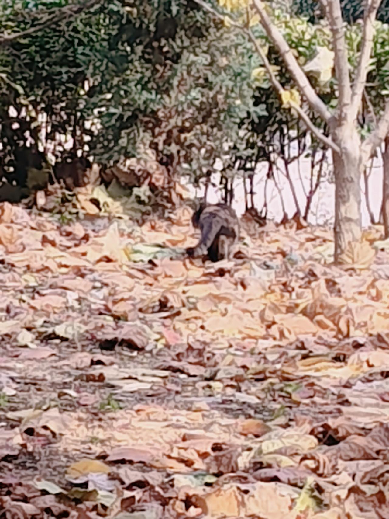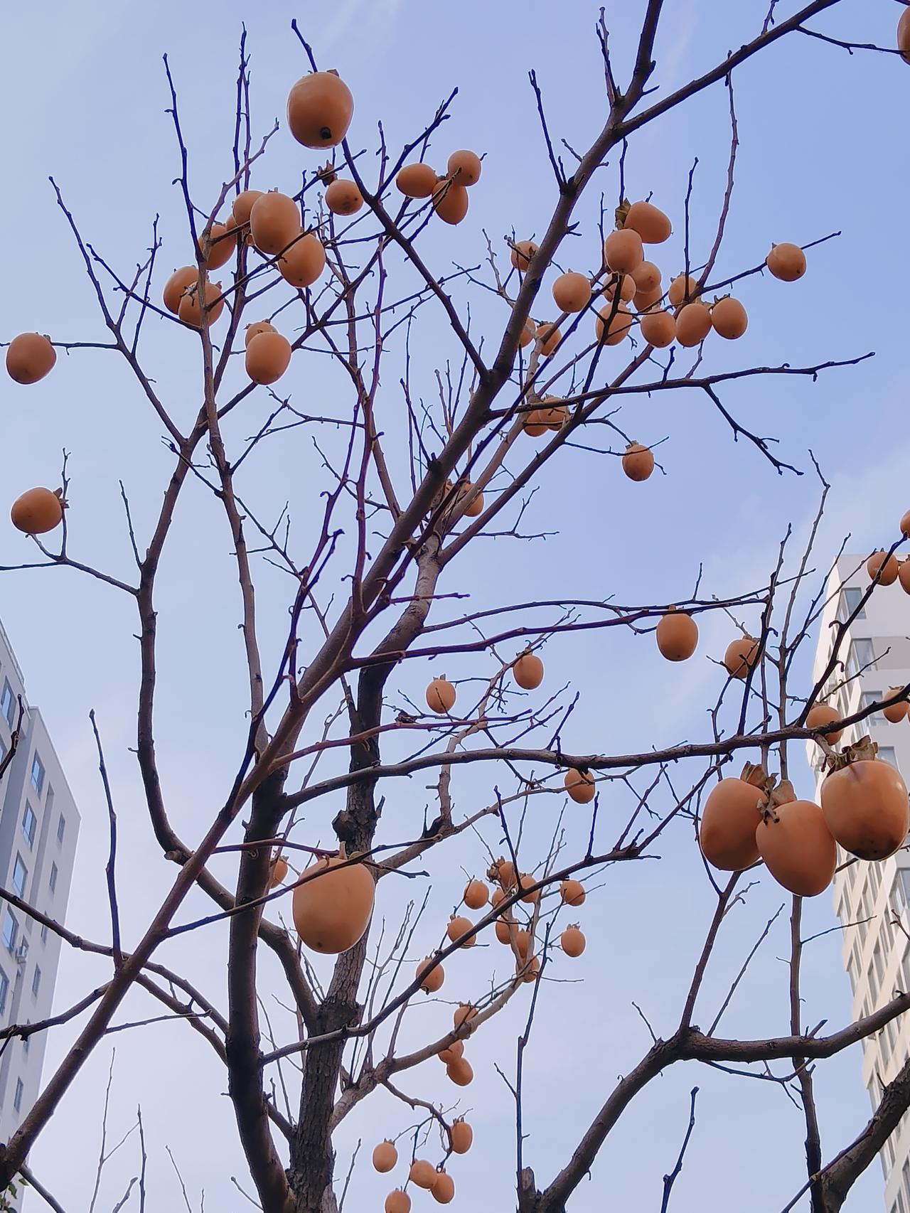 世界很宁静,处处是美景, 常人心自扰,身边万种情。 星期天早晨 吃完了饭在小区里溜达,柿子树已经掉光了叶子,满树金黄色的柿子令人口生津液,成群的小鸟落在柿子树上享受着美味,这些小家伙们很贪心而不知节俭,这个柿子上叨两口,另一棵树上尝尝味道,搞得很多柿子受伤挂在树上,然后不知哪一场风自然脱落烂掉。 小区的很多楼前楼后的空地都种了柿子树,几乎没有人摘取,也许是有意为小鸟留着口粮,让小区冬天的天空,有一丝暖意和活力。 小区的老猫,臃肿肥胖,旁若无人的在厚厚的落叶上打滚撒欢,时而嗅嗅落叶仿佛感知秋天的味道。 时光荏苒,四季更替,大道至简,万物有灵,哪个不逍遥自在? 人,也不知谁封的万物之灵,为什么都感觉活的累,是聪明反被聪明误吗?如此说来,还是笨一点好,不至于没事自己给自己添堵,无事生非庸人自扰。 看看吃柿子的小鸟,看看落叶上的肥猫,有些羡慕有些惭愧。