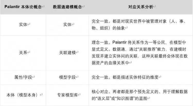 ·复用与沉淀:即实施了一个或多个项目后,转换算法就会逐步沉淀下来,供后续建模时复用。这正是在构建一个不断成长的、行业化的“专家知识库”,这与Palantir在不同项目(如政府、金融、医疗)中积累的行业本体库思路完全一致