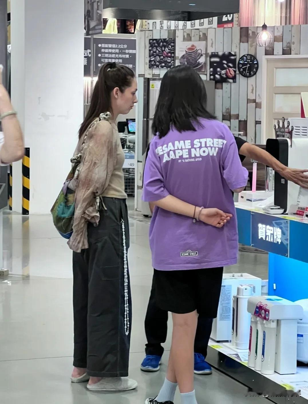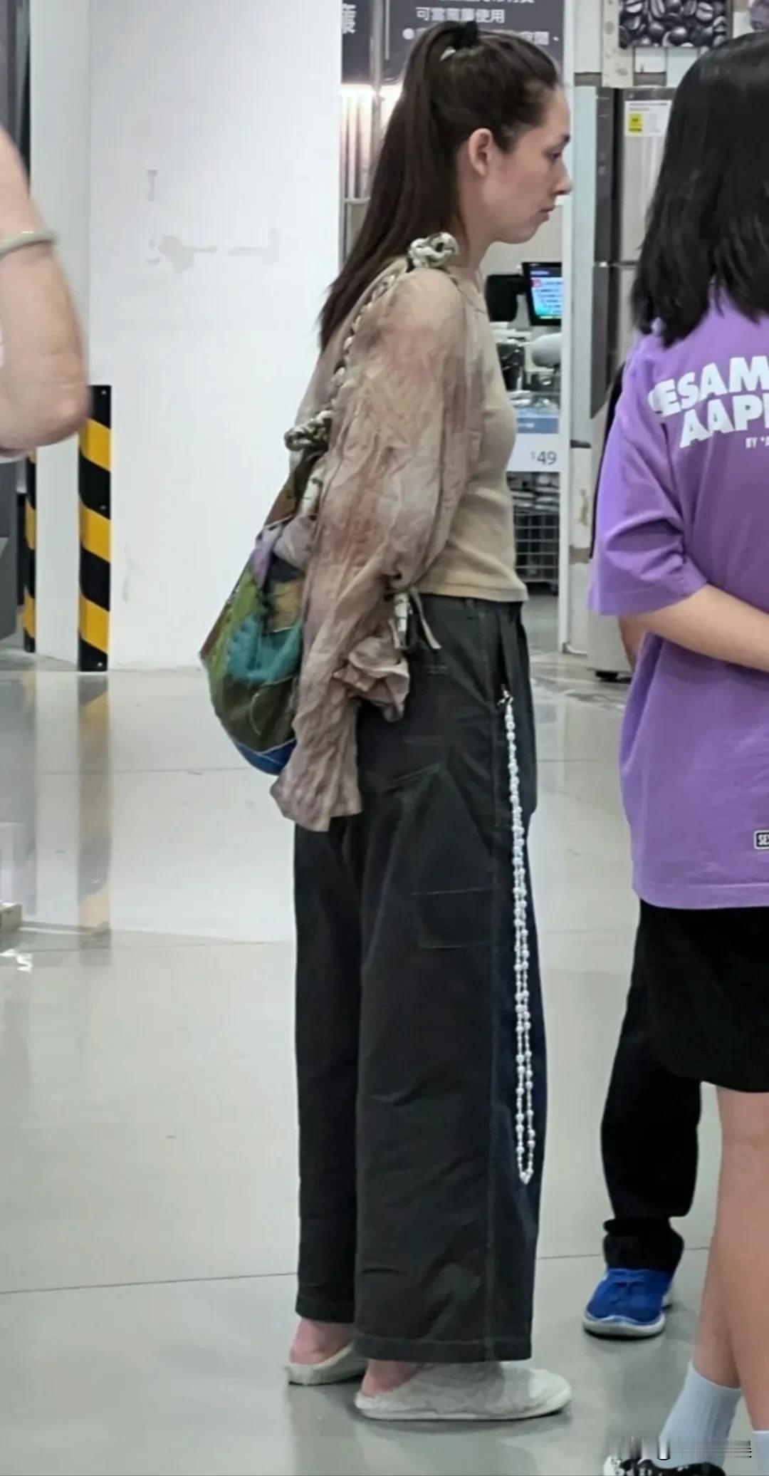 郭碧婷带着孩子现身台北购物。 素颜朝天,发际线有点高,脸色有点憔悴,胸塌弯腰,女