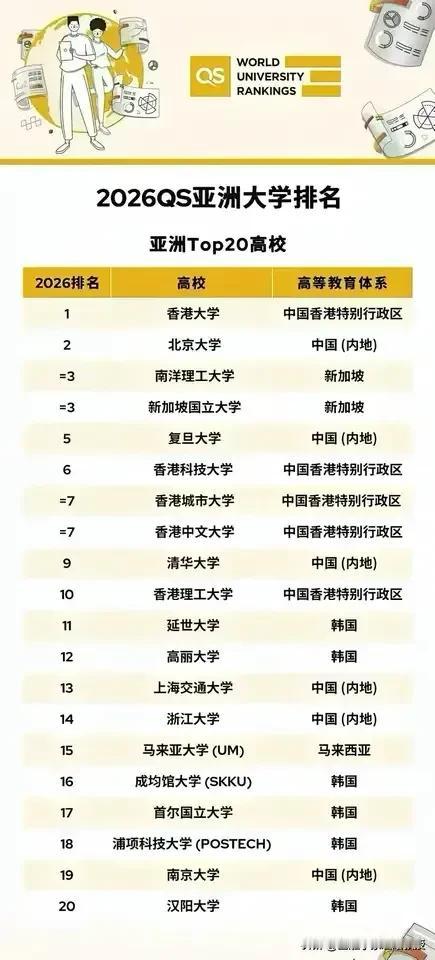 香港大学确实厉害,开放了非本地生和国际生的本科生转入香港大学的通道,只要是QS/泰晤士前50,GPA不低于3.0或均分达到70%,都有机会被港大录取。这是香港大学吸纳全世界优秀人才的创新之举。这就好比是高中考大学,没考上港大本科,现在多出来一条上港大的机会。 打个内地大学的比方,就好比是本科没考上清华,考上了北师大(985高校),但是在北师大的成绩特别优异,也可以在本科阶段转入清华的意思。 根据最新的2026全球QS亚洲大学排名,香港大学已经位列亚洲地区的第一。
