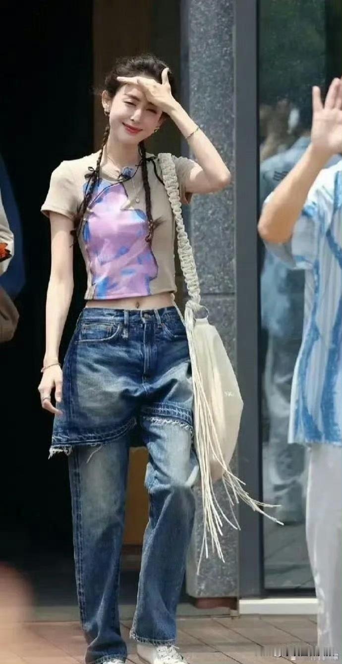 古力娜扎的“松弛感穿搭”,身材好果然任性 古力娜扎最新路透里,浅棕印花短T配拼接牛仔,松垮版型裹出纤腰长腿,随性又亮眼。编发+流苏包添了几分甜酷,素颜状态下的线条感依旧惊艳——松弛感穿搭的底气,大抵就是这“穿麻袋都好看”的身材吧。