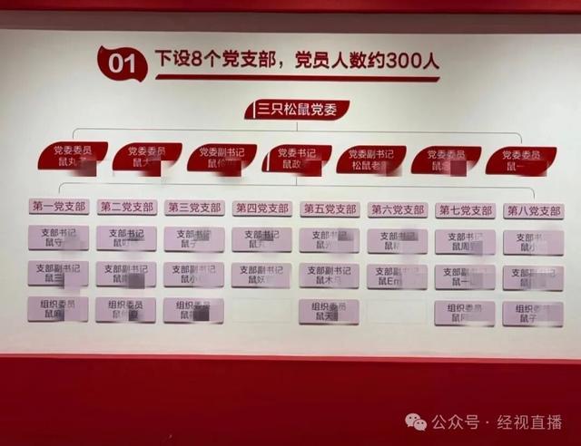 该网友发布的照片显示,在一次分销会上,每个座位都摆放着以“鼠”字开头的名牌。此外,网友还展示了三只松鼠党委名单,上面的姓名也均以“鼠”字开头。记者尝试联系发帖网友,但未获得回应。