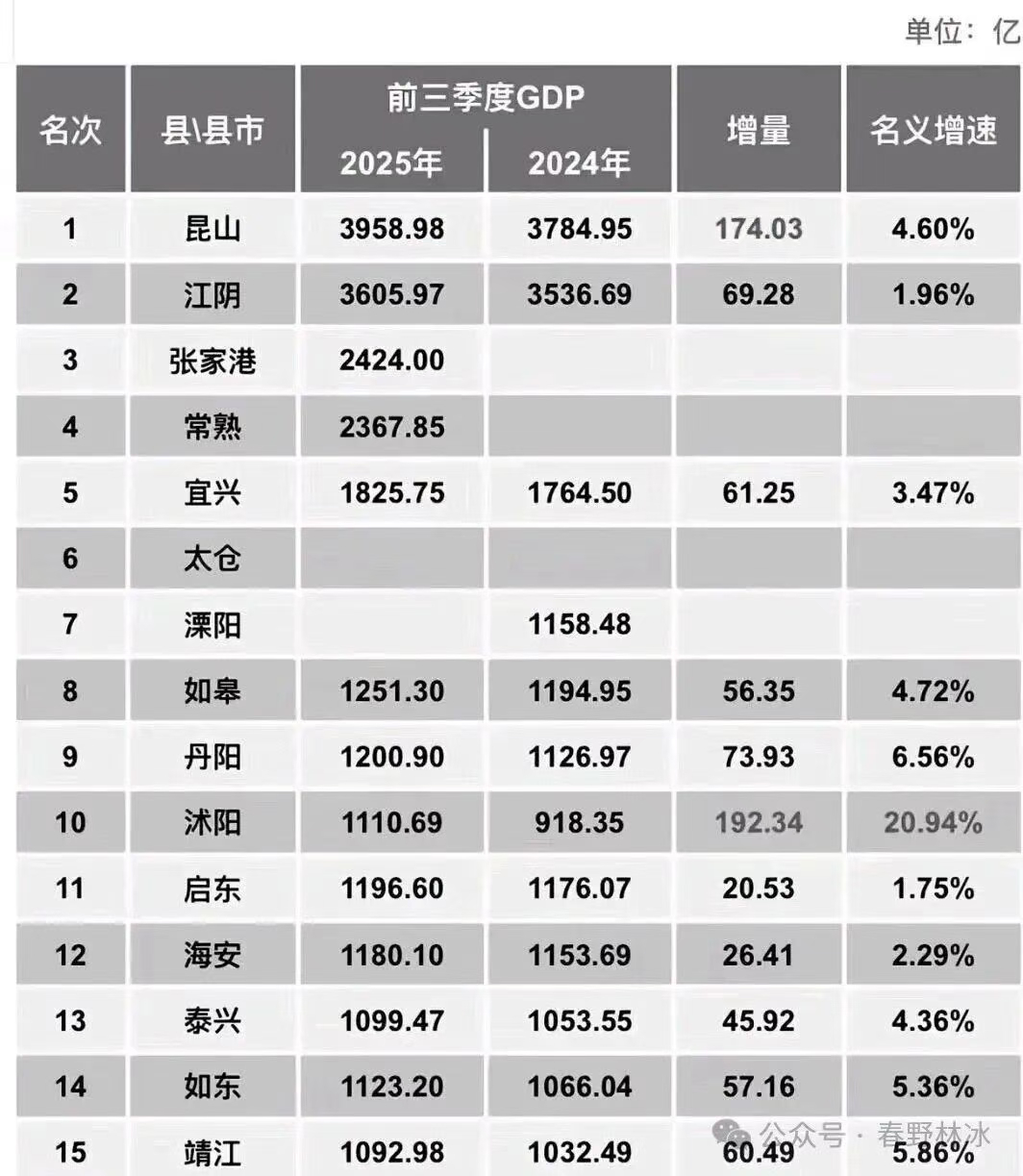 江苏的这些个县非常厉害啊,你看这个小小的沭阳县,以前是不知名的小地方,但是现在成了江苏第十,三个季度的GDP就过1000亿了。