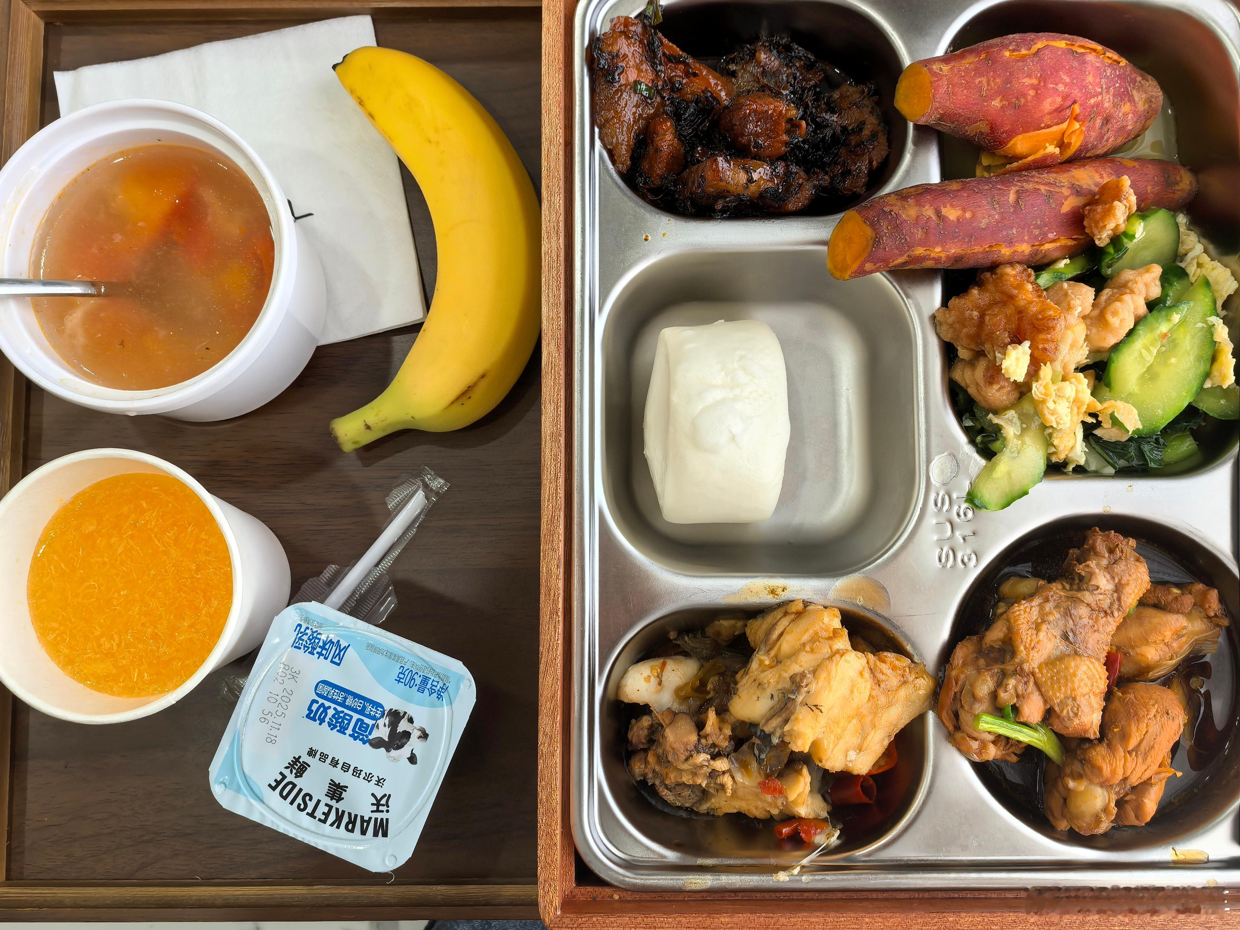 今天跑看看车,顺道蹭了顿午饭,这伙食是真不错啊!菜多肉香还有水果,比我点的外卖香多了