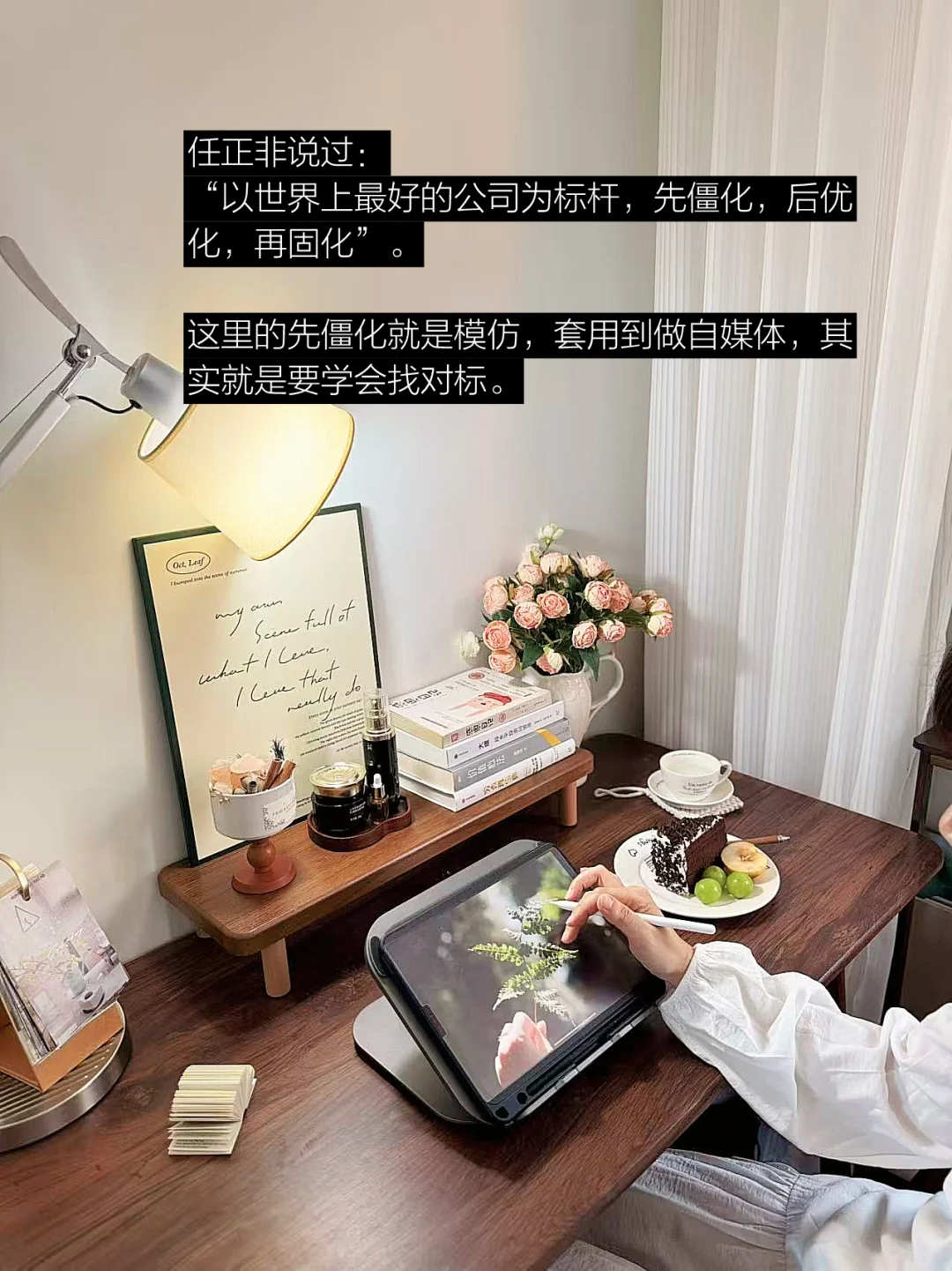 华为老大任正非说过:“以世界上最好的公司为标杆,先僵化,后优化,再固化”。这里的先僵化就是模仿,套用到做自媒体,其实就是要学会找对标。
