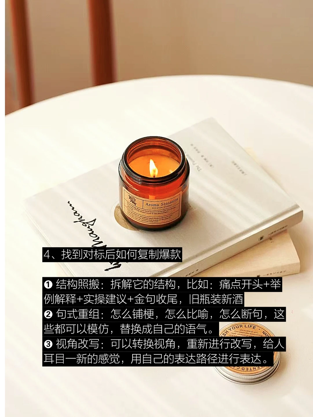 ➊ 结构照搬:拆解它的结构,比如:痛点开头+举例解释+实操建议+金句收尾,旧瓶装新酒