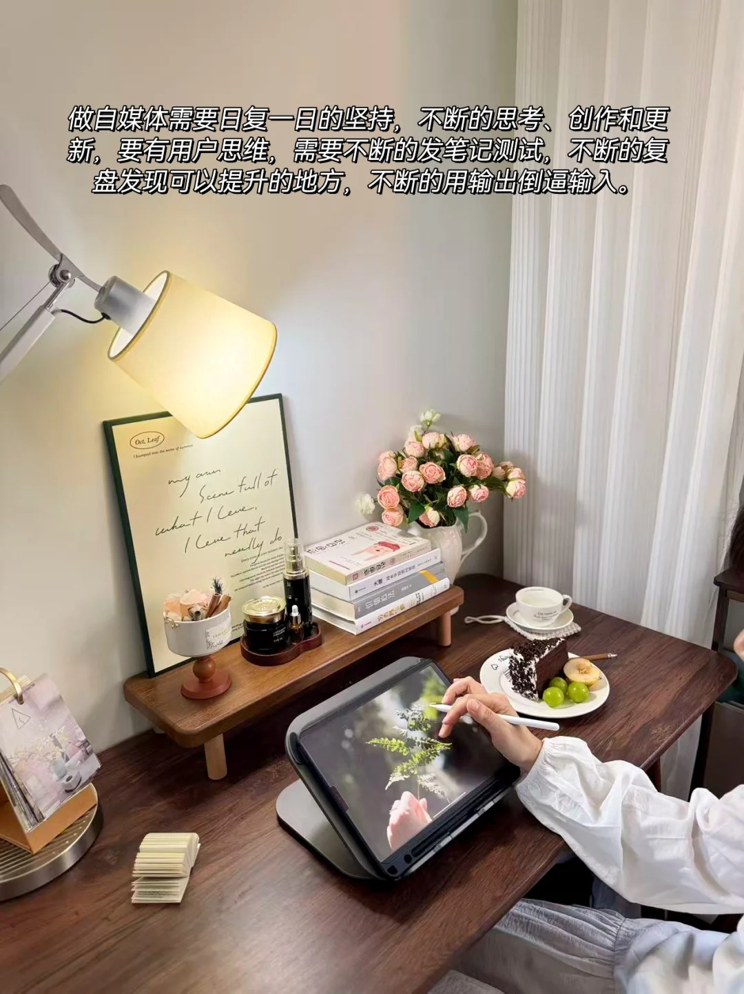 做自媒体需要日复一日的坚持,不断的思考、创作和更新,要有用户思维,需要不断的发笔记测试,不断的复盘发现可以提升的地方,不断的用输出倒逼输入。