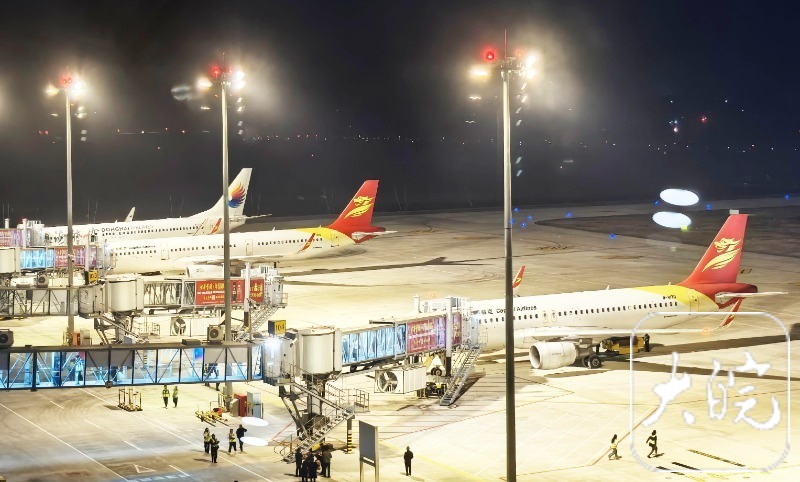 11月24日晚,3架客机同时停在亳州机场停机坪