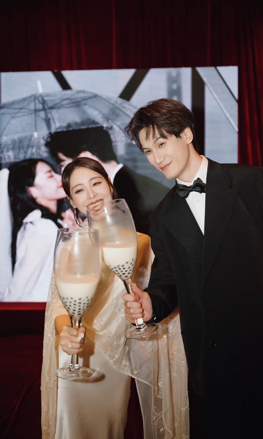 真正到了仪式开场时反而淡定自若(没时间紧张😅…没有选择父母陪同的传统形式,因为这条路我们想牵着彼此的手自己走完,考虑到隔天还要带着我的广东家人好好逛逛另一半长大的地方,便以奶茶代酒了!同样诚意满满![捂嘴笑R]姨父笑着说:“今天这场婚礼是由你们自导自演的,往后的人生也是,希望你们幸福美满到老。”
