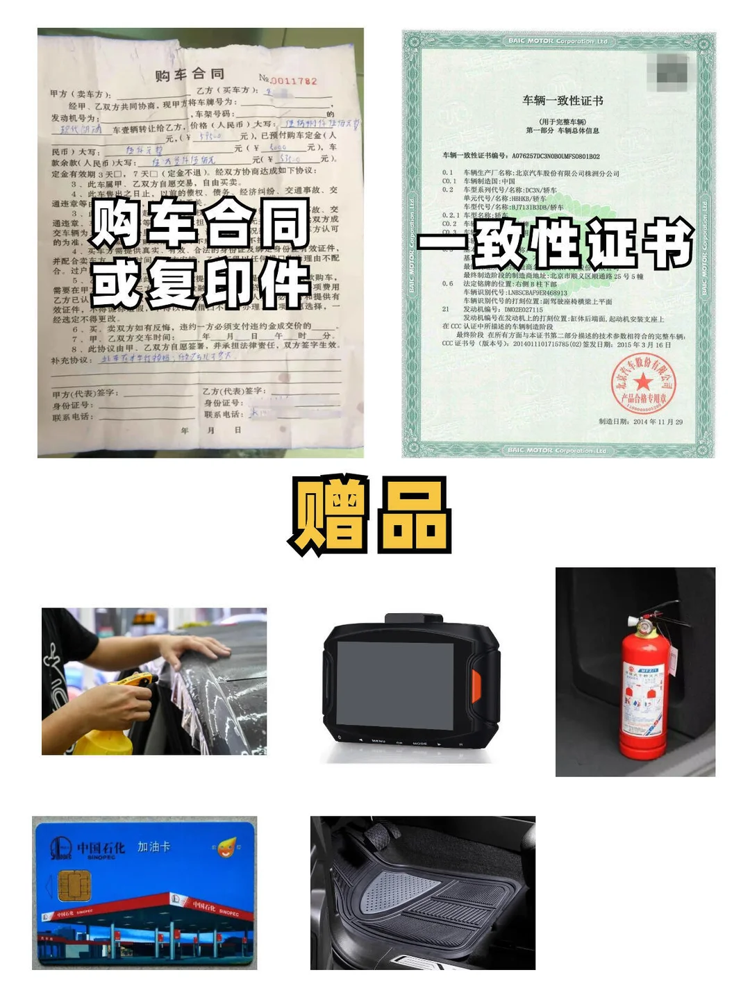 2️⃣购车合同:上面有注意事项和赠送的装潢,提车时要照着对看有没有送齐全,也免得后期扯皮