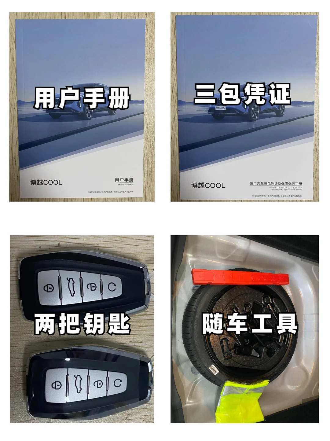 1️⃣5️⃣随车工具--反光背心、三脚架、备胎、千斤顶等