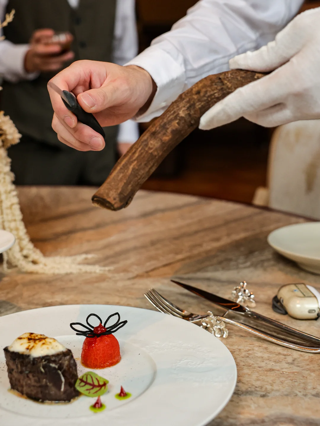 说实话,本身就是冲着环境来的,但没想到菜和服务可以差成这样,588+10%也是钱! 在张园这个寸土寸金的地方,餐厅把木质结构和欧式复古做得无可挑剔。尤其是中午阳光洒下来的时候,美得不可一世。 🙃关于菜品:除了甜品都挺差的,主菜猪肉强行刨山胡椒,毫无香气,像是给客人喂木屑,有种公报私仇的感觉谁懂… ❌ 服务,整个餐厅给人的感觉就是“反正我马上要离职了,你爱咋样咋样”的死感,包括但不局限于:菜品介绍极度敷衍;服务响应极慢: 全程招手三四次才能等来撤盘子。