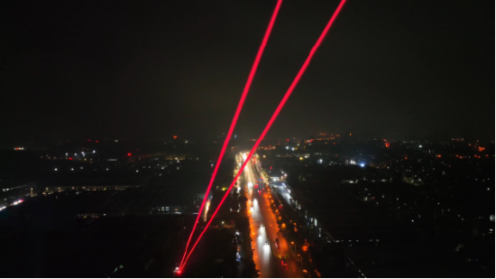 在可视距离上,行业主流探照灯的范围普遍局限于2至5公里,而QUASAR(星穹)全彩激光探照灯实现突破性升级,可视距离可达10公里。依托0.5°极窄光束角与300mm超大口径镜头,通过精准聚焦技术有效避免光束发散,即便远距离投射仍能保持光束饱满明亮,营造极具冲击力的视觉体验。这一特性让它成为全城共庆级演出的理想之选,为大型活动注入强大的视觉穿透力