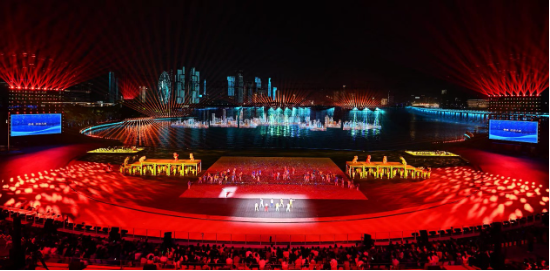 从应用场景来看,产品广泛适配大型庆典、城市地标亮化、文旅夜游、主题公园、户外音乐节等多元需求:在文旅项目中,高饱和色彩能强化夜间沉浸氛围;在地标亮化中,10公里可视距离可让建筑光影成为城市夜景核心符号;在大型庆典场景中,如本次深圳全运会闭幕式现场,其动态光束矩阵串联陆域看台、水域舞台与城市背景,成为“城市全景闭幕式”的视觉点睛之笔,充分展现光影创意的表现力。
