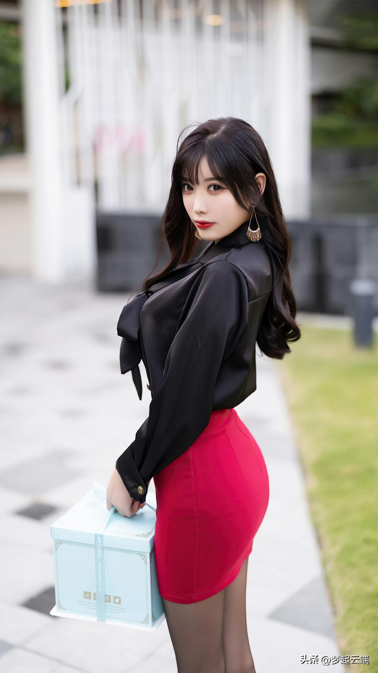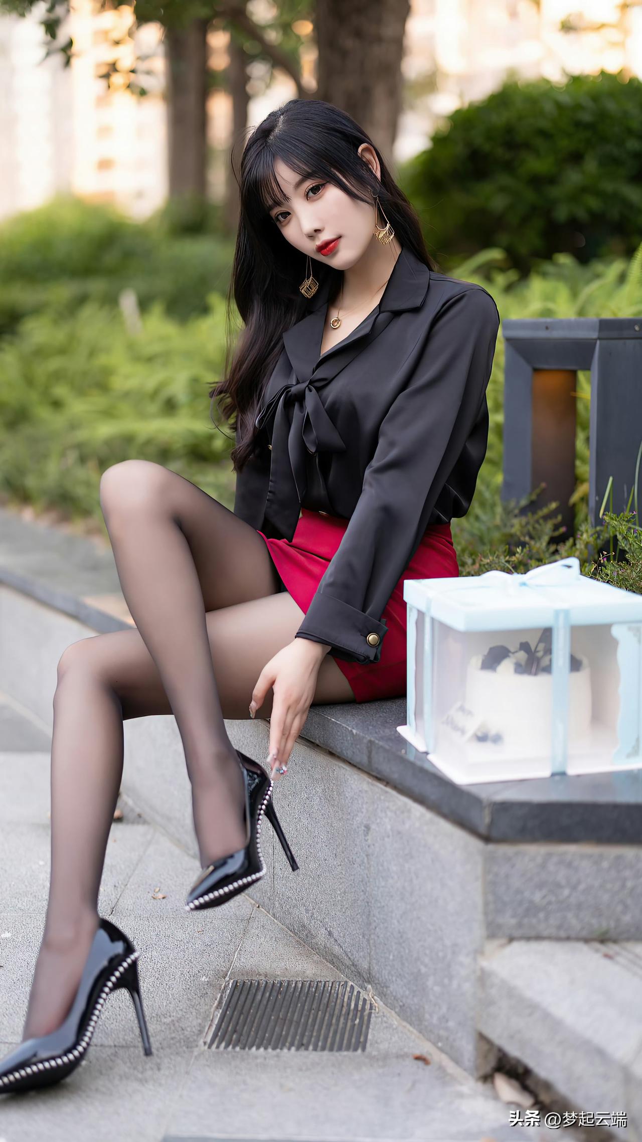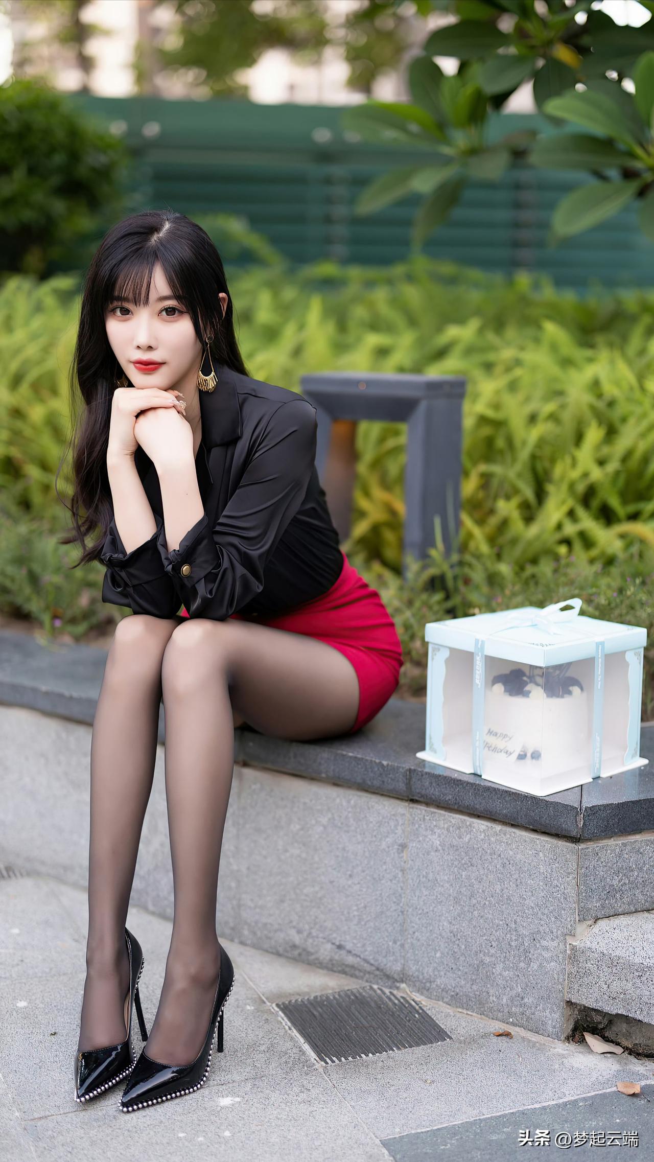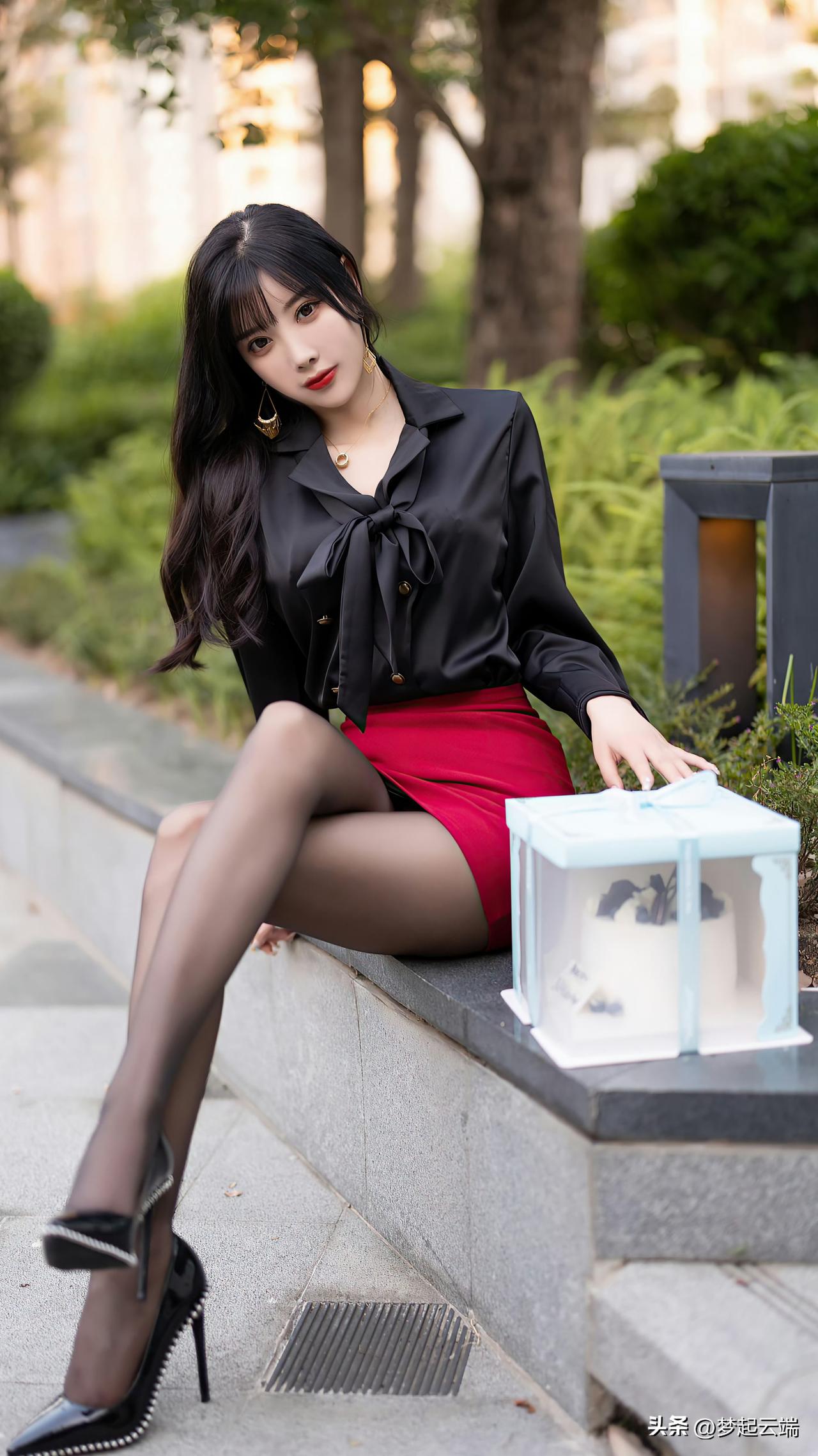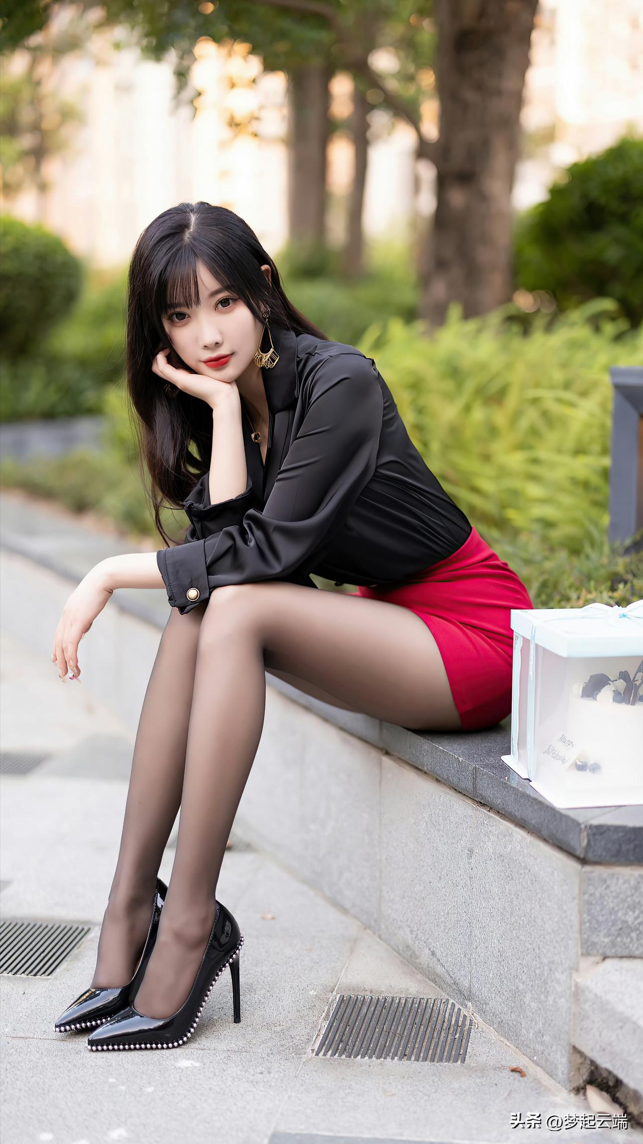 优雅黑丝穿搭,红裙与黑丝的完美搭配,尽显都市女性魅力!👠💄👗