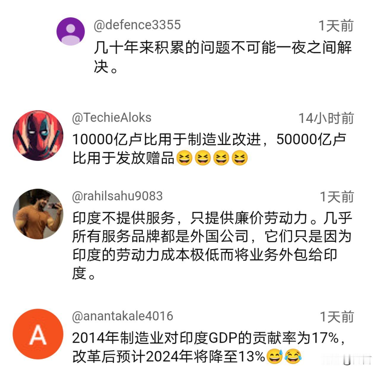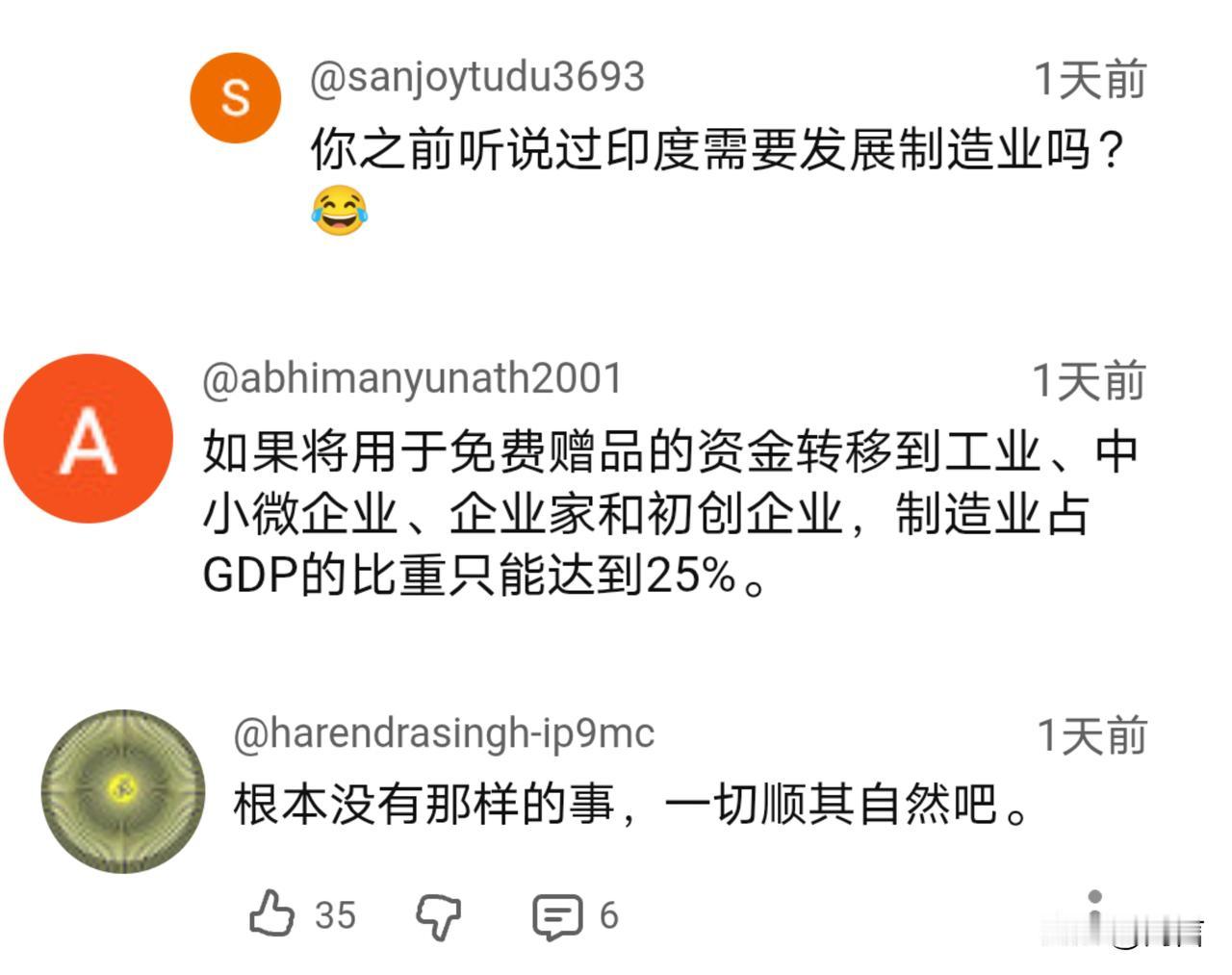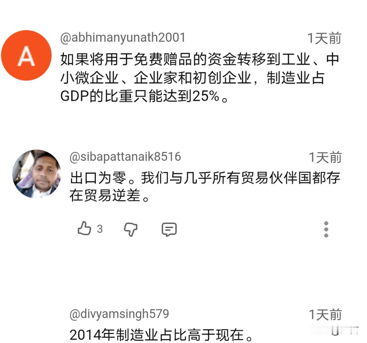 制造业占比下滑!此刻,就连印度网友都不相信未来会成功。 据一位印博主11月24透露,印度将大力发展和扶持制造业,计划把制造业的产值在经济中的占比提高到25%。 十年前,印度推出过类似的计划,结果没能如愿,制造业在经济中的占比不仅没能提高,反而进一步下滑。 自老美对其开征关税后,印度经济出现了较大的波动。很显然,其现在已经意识到了制造业的重要性,重新开始大力发展和扶持。 消息传出后,引发热议。与以往不同的是,由于之前的失败,印度网友并不认为往后就能取得成功…