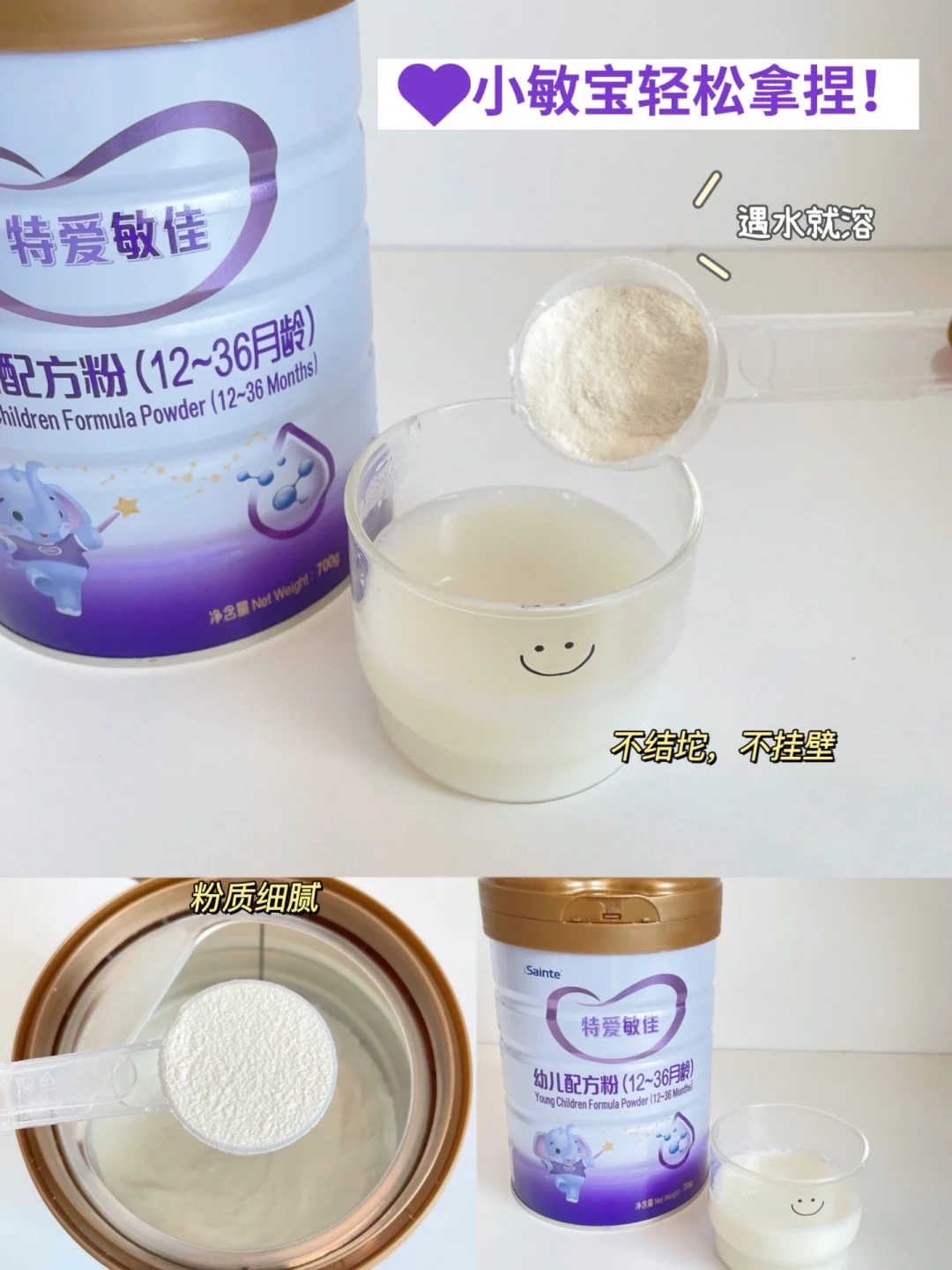 懒得做功课的话,可以直接选圣桐特医旗下的,特爱敏佳幼儿配方粉~我家现在还在喝这个!它的配方是100%部分水解乳清蛋白,小分子的蛋白更好吸收,70%乳糖含量,对于敏宝是非常友好的,营养方面也比较在线,添加了DHA,叶黄素、乳铁蛋白等营养,让成长upup!