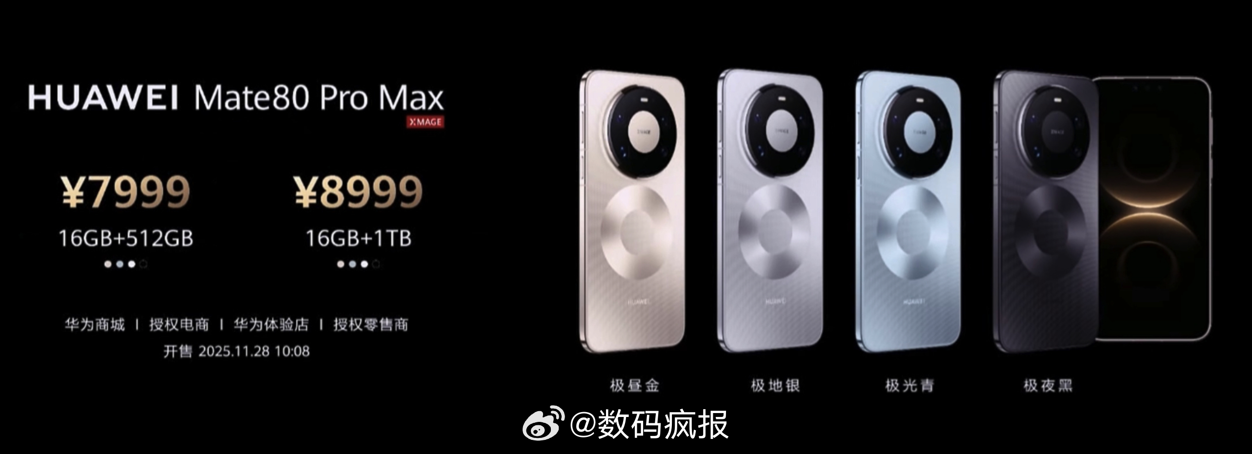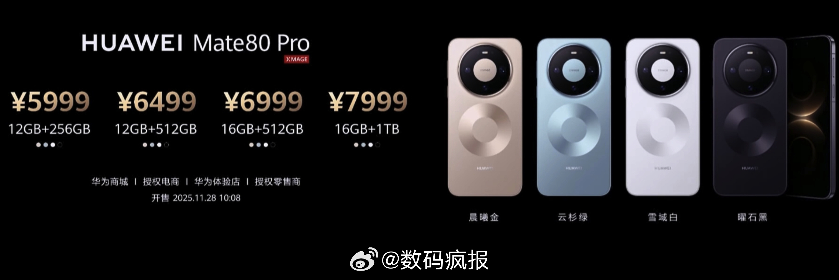 华为Mate80系列发布,4699起!国补后只要4199起!Mate 8012+256 4699元12+512 5199元16+512 5499元Mate 80 Pro12+256 5999元12+512 6499元16+512 6999元16+1T 7999元Mate 80 Pro Max16+512 7999元16+1T 8999元Mate 80 RS20+512 11999元20+1T 12999元