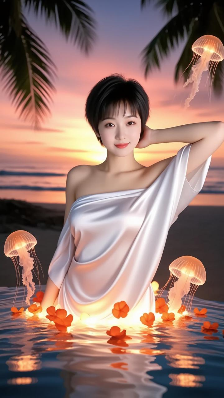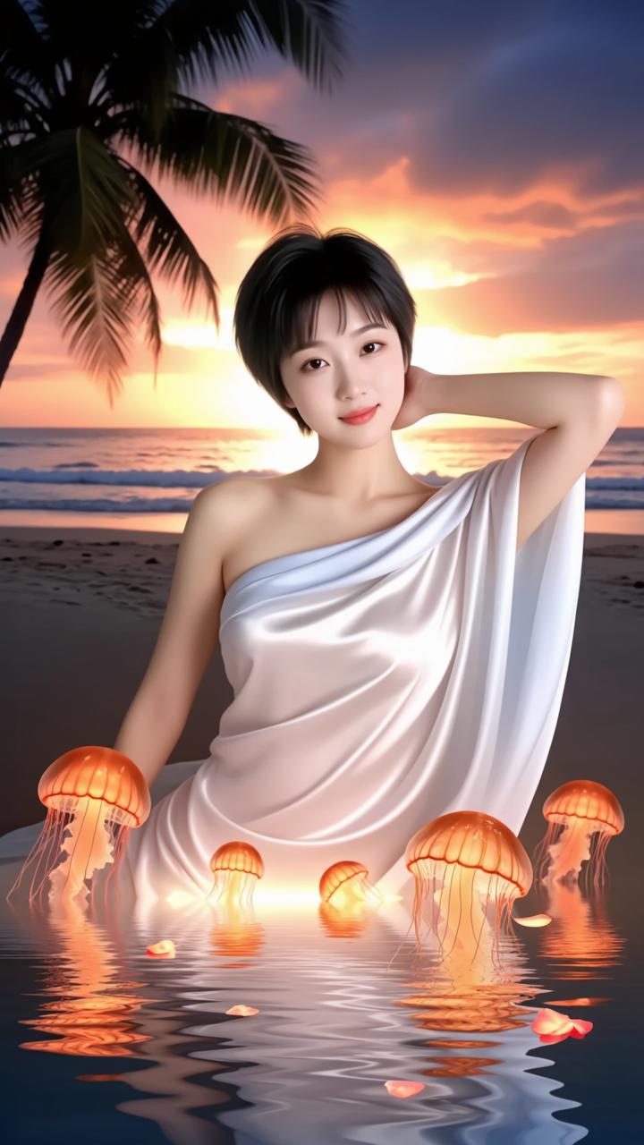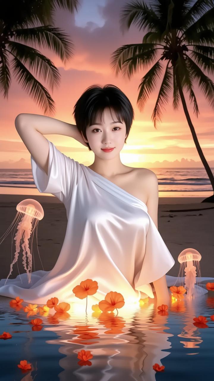 海边的梦幻少女,温柔的海风轻拂,感受大自然的美好。🌊💙🌺