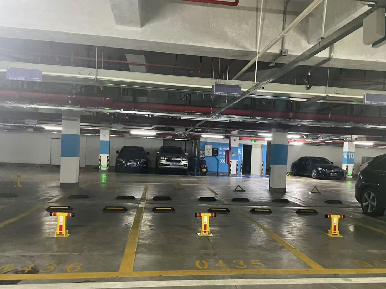 多位中山市网友反映越秀天樾湾小区多个未出售的停车位被锁(资料图)。受访者供图