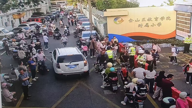 临近傍晚,金山区石化街道十二村内,金山区教院附小的放学铃声准时响起。曾经人车混杂、鸣笛不断的校门口,如今成了一条限时封闭的“安心走廊”,没有汽车的穿梭,只有孩子们轻快的脚步和志愿者温暖的目光。