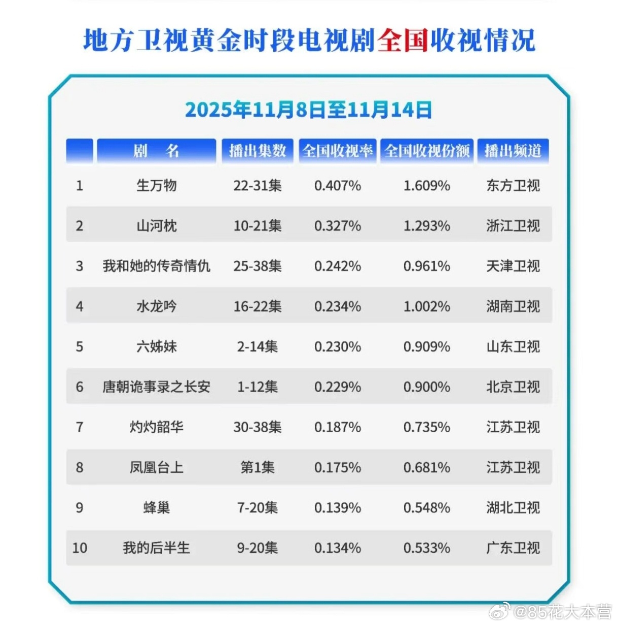 CVB收视——卫视黄金时段电视剧全国收视榜~东方卫视播出的《生万物》连续两周第一!