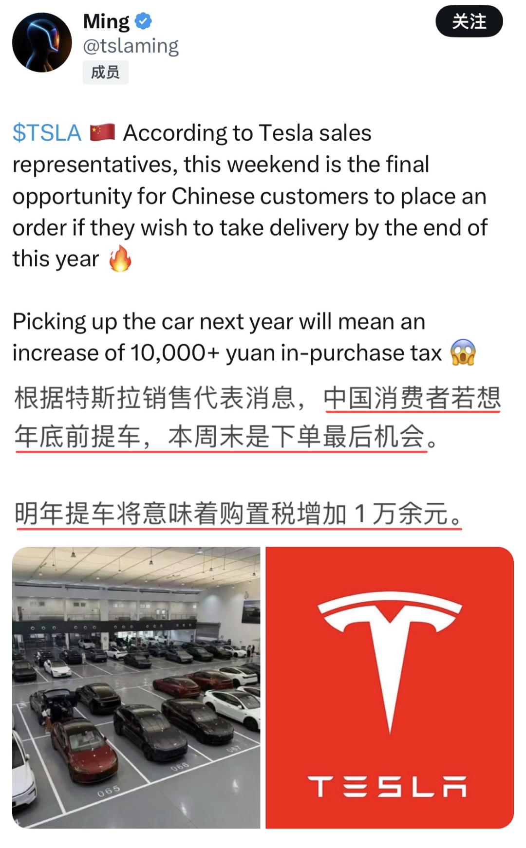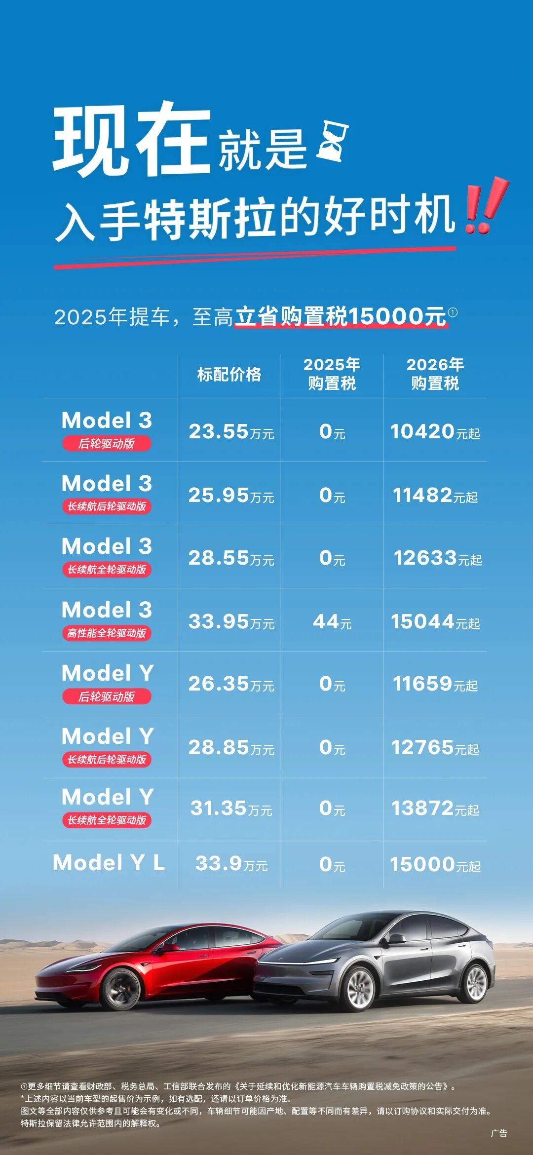 现在正是入手特斯拉的最佳时机!本周末前下订,最多可省6.6万元,涵盖购置税减免、置换补贴、0息福利等多重礼遇。 💰 省在哪?一笔账算清楚: · 🔹 购置税减免:年底前提车省上万元 · 🔹 置换补贴:享15000元支持 · 🔹 5年0息福利:节省约2.6万元利息 · 🔹 特享充电权益:省约3900元 · 🔹 老车主引荐礼:8000元车漆选装金 · 🔹 换新计划:5000公里免费超充,再省千元 ⏰若推迟至明年提车,不仅匹配等车时间更长,还需自行承担万元以上购置税。产能全年锁定,现车优先匹配! 正如《中国汽车报》所言:花更少的钱,买更放心的车。现在就是买车的最好时机! 你准备好抓住这波福利了吗?评论聊聊你的购车计划!【来自懂车帝车友圈】