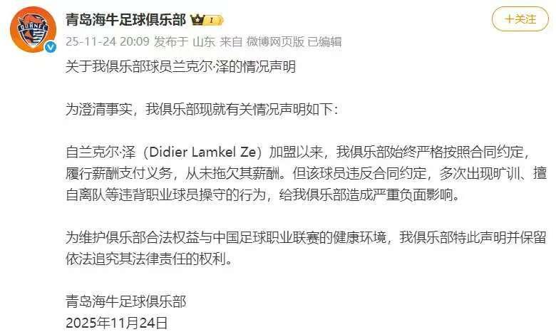 兰克尔·泽给海牛队主帅李霄鹏整了一封感谢信:感谢您的信任,让我度过了一个成功的赛季,我向您致以最高的敬意。 这不是把李霄鹏往火坑里推吗?故意的吧。 要知道,海牛队刚刚发出了声明:我俱乐部始终严格按照合同约定,履行薪酬支付义务,从未拖欠其薪酬。但该球员违反合同约定,多次出现旷训、擅自离队等违背职业球员操守的行为,给我俱乐部造成严重负面影响。 还有多种来源的“小作文”,翻译的,知情人的,痛斥兰克尔·泽的种种不堪,借钱,耍赖,保级最后一战拒绝比赛,直接跑路,还自我宣传“我拒了新合同,因为俱乐部欠我太多钱,承诺也没兑现。” 。。。。。。 海牛保级成功,按说应该大张旗鼓,声势浩大的宣传保级的艰难,老板的支持,球员的努力。。。。 咋就先开始声讨兰克泽了呢? 上岸第一剑,先斩意中人,还是推完磨就杀驴? 毫不夸张的说,兰克泽是海牛保级成功第一人。12场比赛,7个进球,2次助攻,确实很给力了。 至于其他的非职业行为,在保级这件大事面前,都是小节。海牛邀请其加盟,只是为了留在中超,没有矫正’其职业操守的义务吧。 多问一句, 当他以上场比赛为要挟,提出某些不合理要求的时候,俱乐部除了满足,并没有按照合同予以驳斥拒绝吧,或者说,是俱乐部惯的吧, 实在无法满足了,他就真的撂挑子跑路了。 俱乐部的职业管理,合同约束,都去哪里了? 既然他“违反合同约定,多次出现旷训、擅自离队等违背职业球员操守的行为”,俱乐部按合同给予处罚了吗? 咋还让人家倒打了一耙,说成是”欠薪“了呢.。 当然,不能只听兰克泽的一面之词,但是这至少反映了海牛俱乐部管理方面的”不职业“,保级成功的喜庆气氛,还被冲喜了。 做人留一线,日后好见面,不是更好吗? 海牛俱乐部的“不职业”,上一次是与主帅张外龙之间的纠纷。 2013年8月,当时的青岛中能宣布解除张外龙的执教合同,理由是多次违反合同,俱乐部的管理规定。张外龙表示不认可,并拒绝搬离住所、归还车辆。9月初有人试图将张外龙撵出住所,张外龙直接报警。9月12日,张外龙发布《公开信》。 当年人民网体育的评论标题是:三败俱伤,球迷最伤。 今年9月,曾被吐槽“不会再有球队请他”的张外龙又杀回来了。 秉持”7秒进攻理论“,率领重庆铜须龙冲超成功。 就是说,张外龙有望率领第五支球队,明年征战中超。 那么,会不会有这样戏剧性的画面出现, 踏上青春鸟足球场,龙哥张外龙,是否就油然而生了”复仇“的快感?