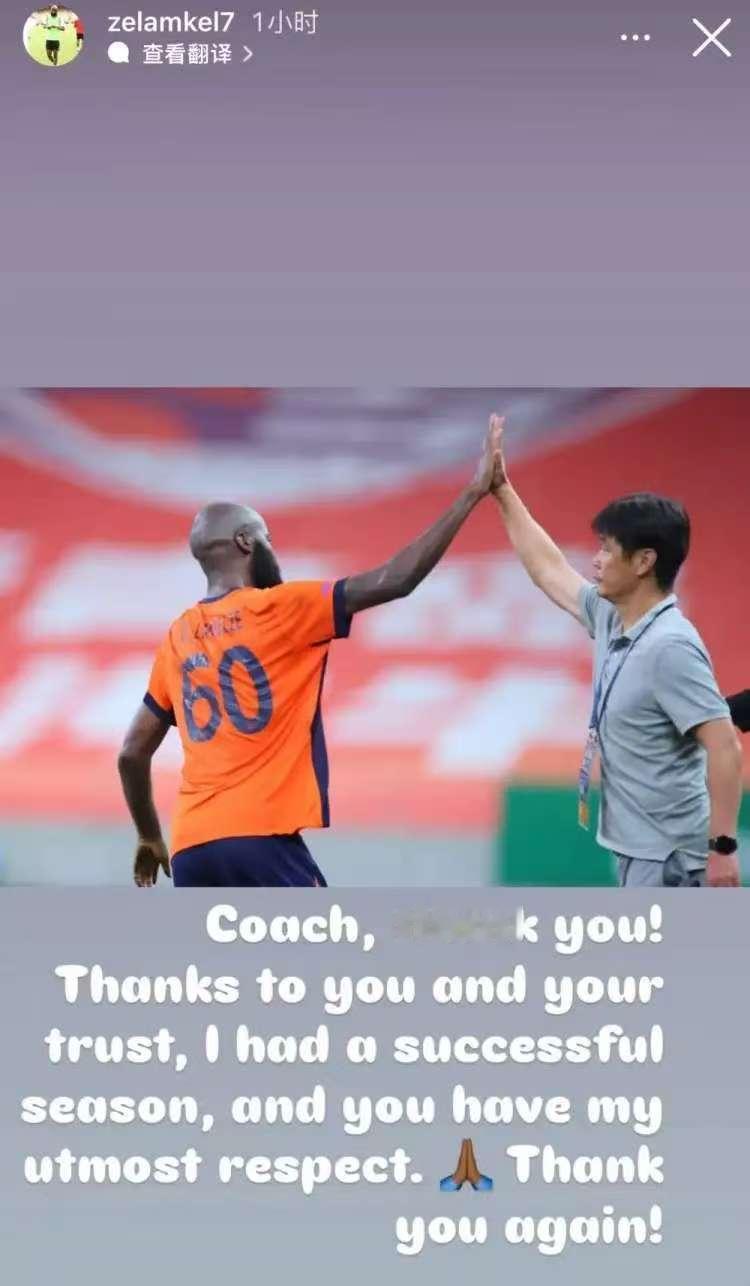 兰克尔·泽给海牛队主帅李霄鹏整了一封感谢信:感谢您的信任,让我度过了一个成功的赛