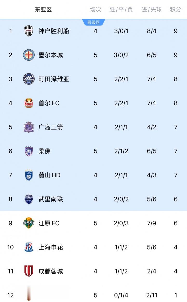 亚冠积分榜:中超冠军海港5轮仅积1分,继续排名东亚区垫底