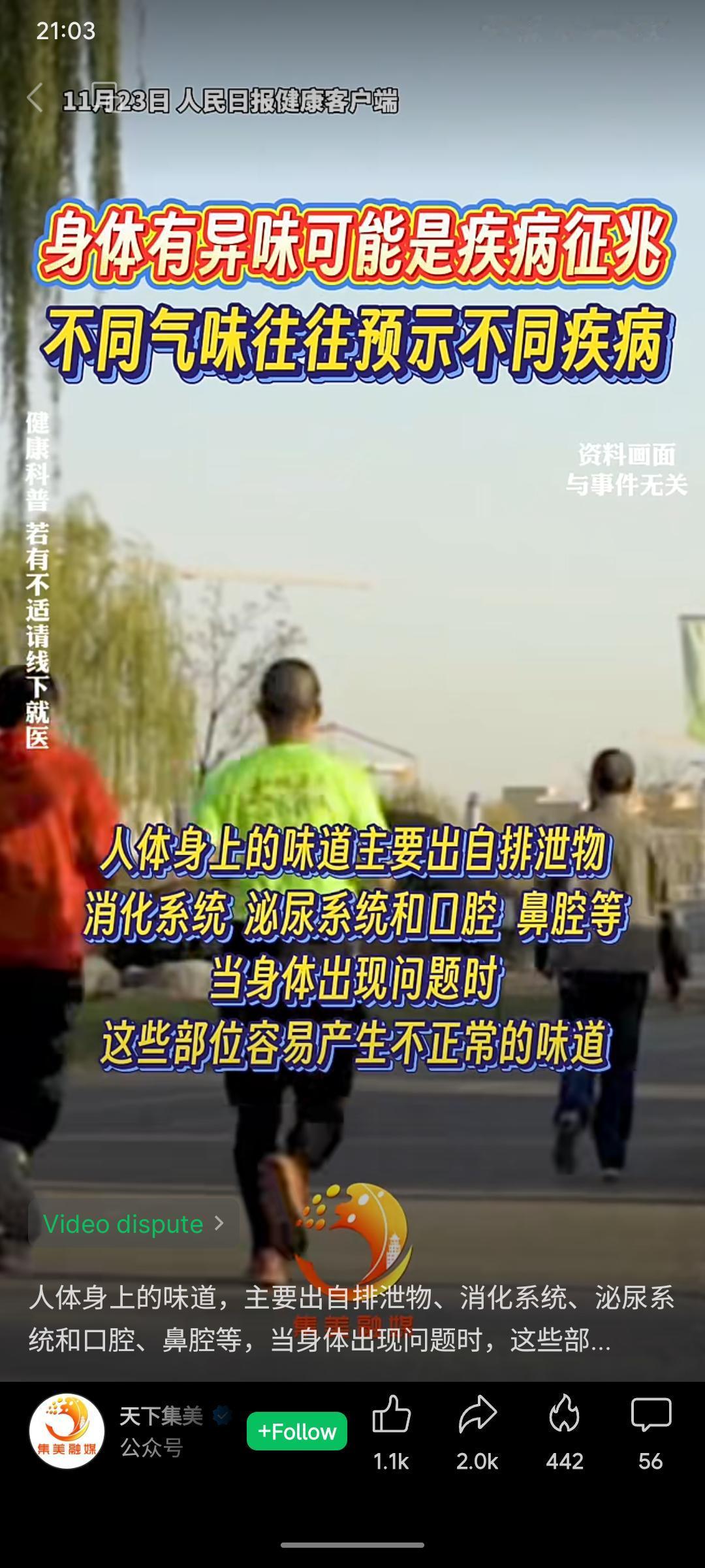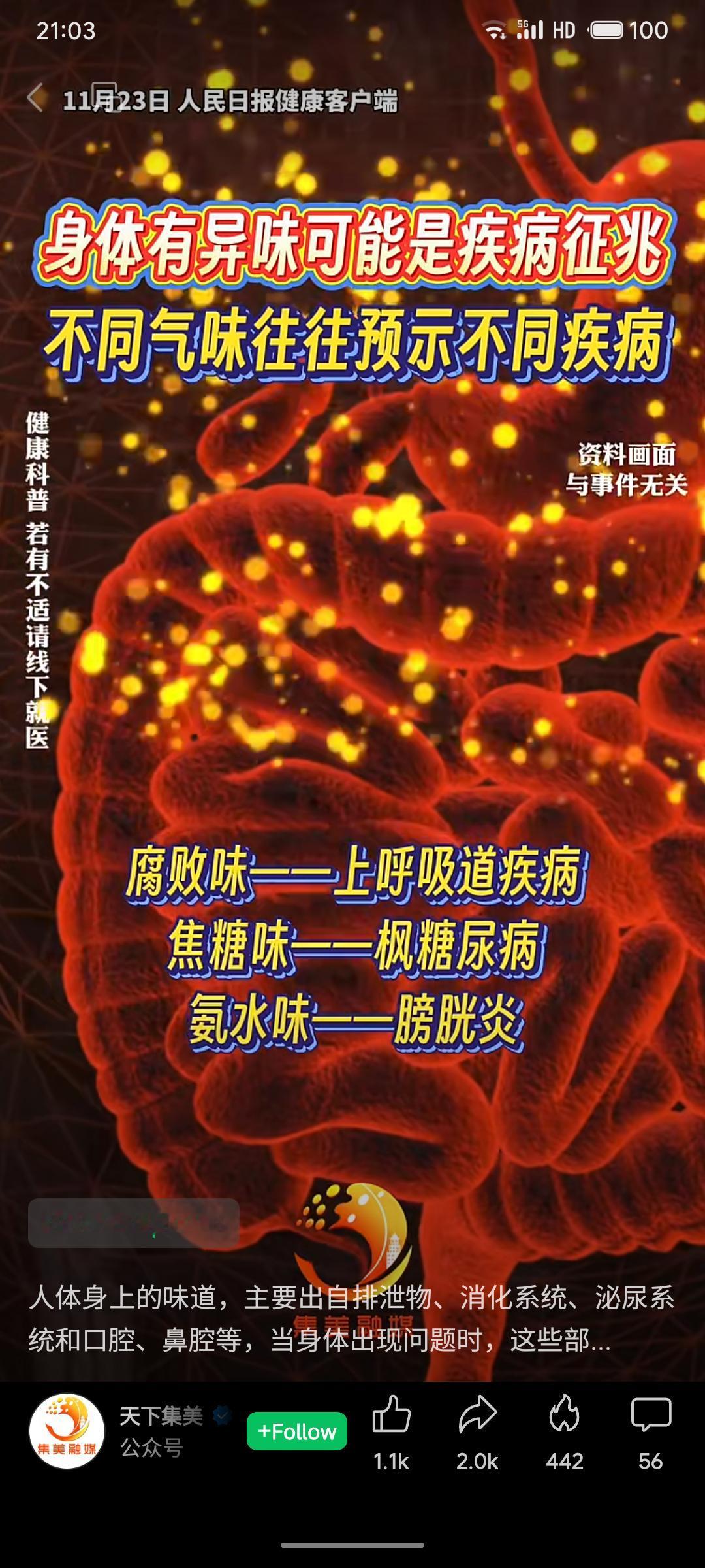 健康科普:身体异味或为疾病信号,如腐败味提示上呼吸道疾病,焦糖味或为枫糖尿病,氨水味可能与膀胱炎相关,烂苹果味常见于糖尿病。提醒公众如有不适及时就医。