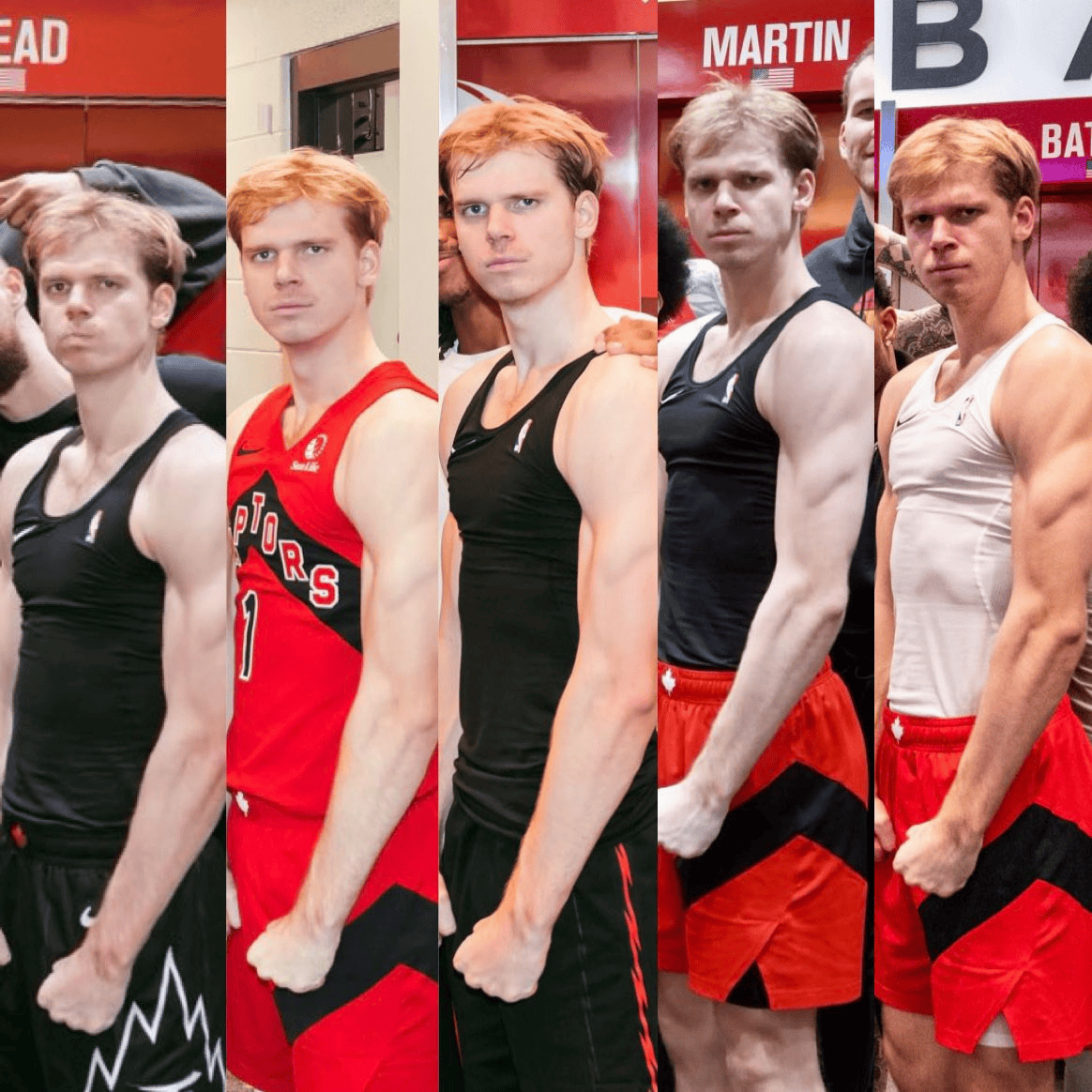 猛龙女记者KeerthikaUthayakumar转发了这张合影,并从中截取出了格雷迪-迪克的手臂肌肉图,配文:猛龙连胜途中的惊人收获。