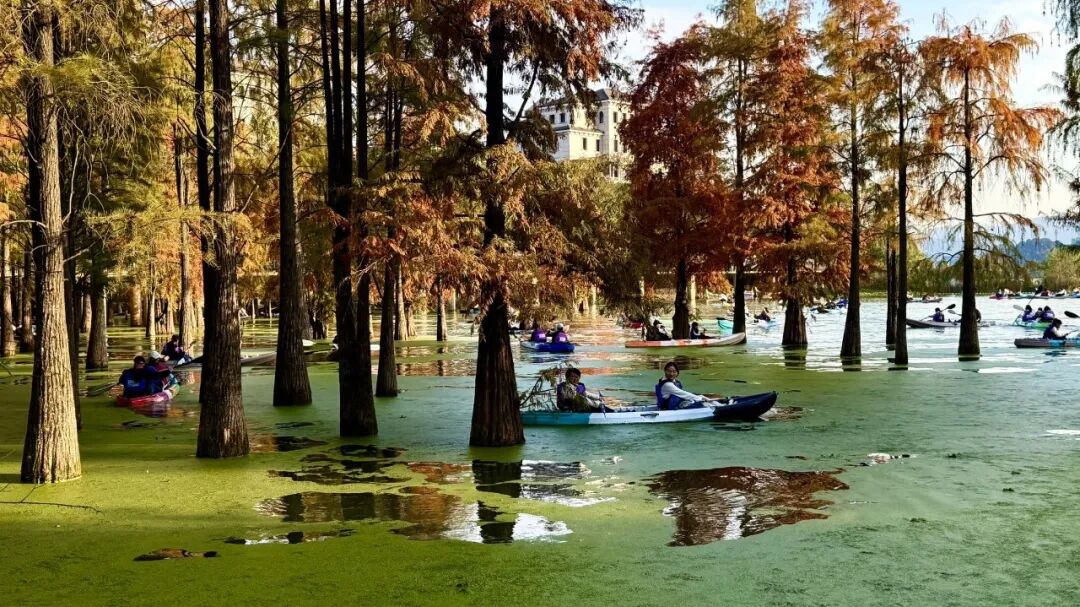 抹茶湖上划船的快乐!平姐姐摄于青山湖