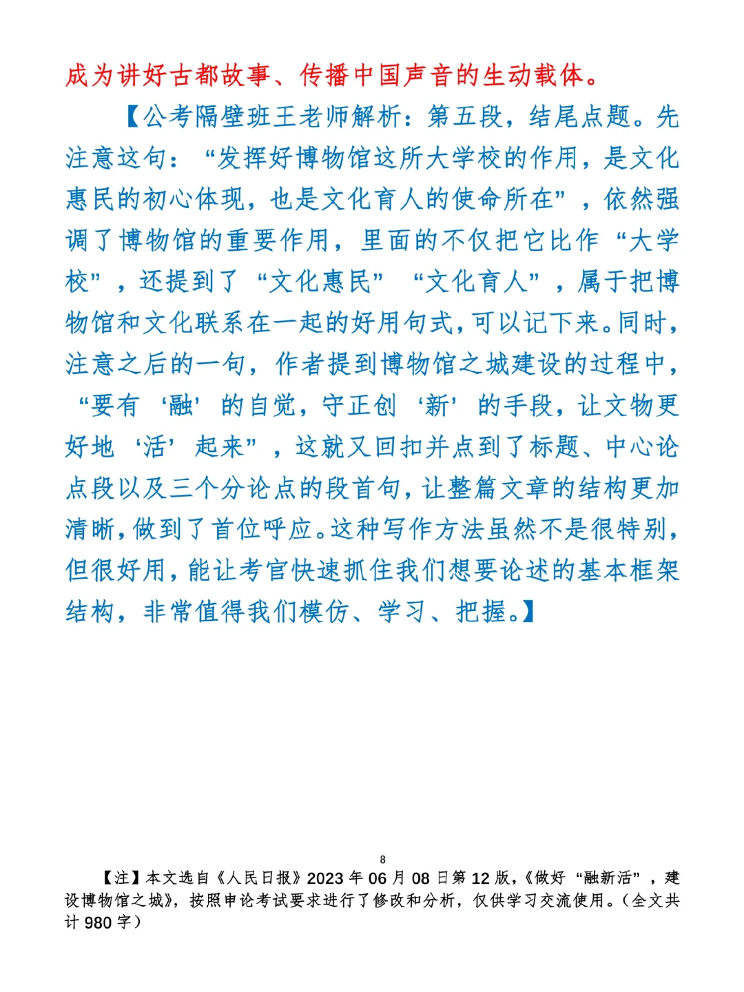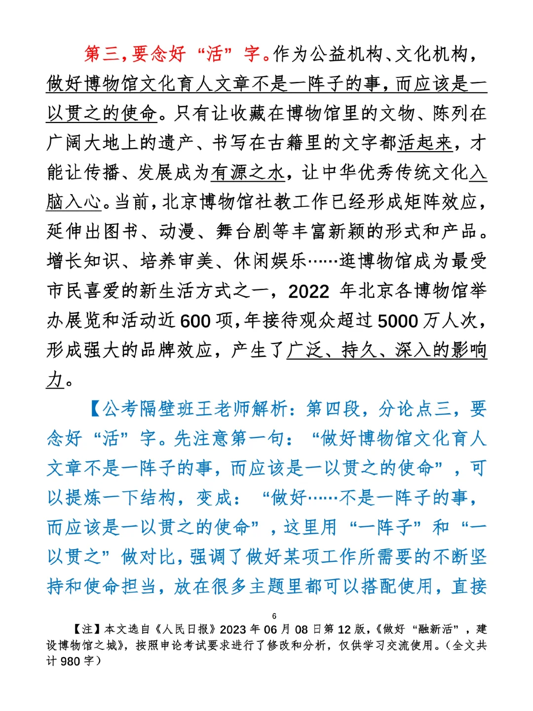 如何抄写:每日抄写文章发在“公考隔壁班王老师”账号,红色字是重点句和结构句,黑色字是正文,蓝色字是解析,大家抄写时不必抄蓝色字。建议先通读全文,做到心中有数再开始抄写,效果会更好。 关于文章:抄写文章来源于人民日报,但每篇文章我都根据申论考试要求进行了修改:一是重写或修改开头、结尾;二是统一段首句句式结构;三是调整段落字数,使文章结构更均衡;四是简化复杂长难句,使之更具可模仿性。每篇文章无论修改多少,都是基于申论考试要求,毫无对人民日报文章品评之意。(此处致敬人民日报)