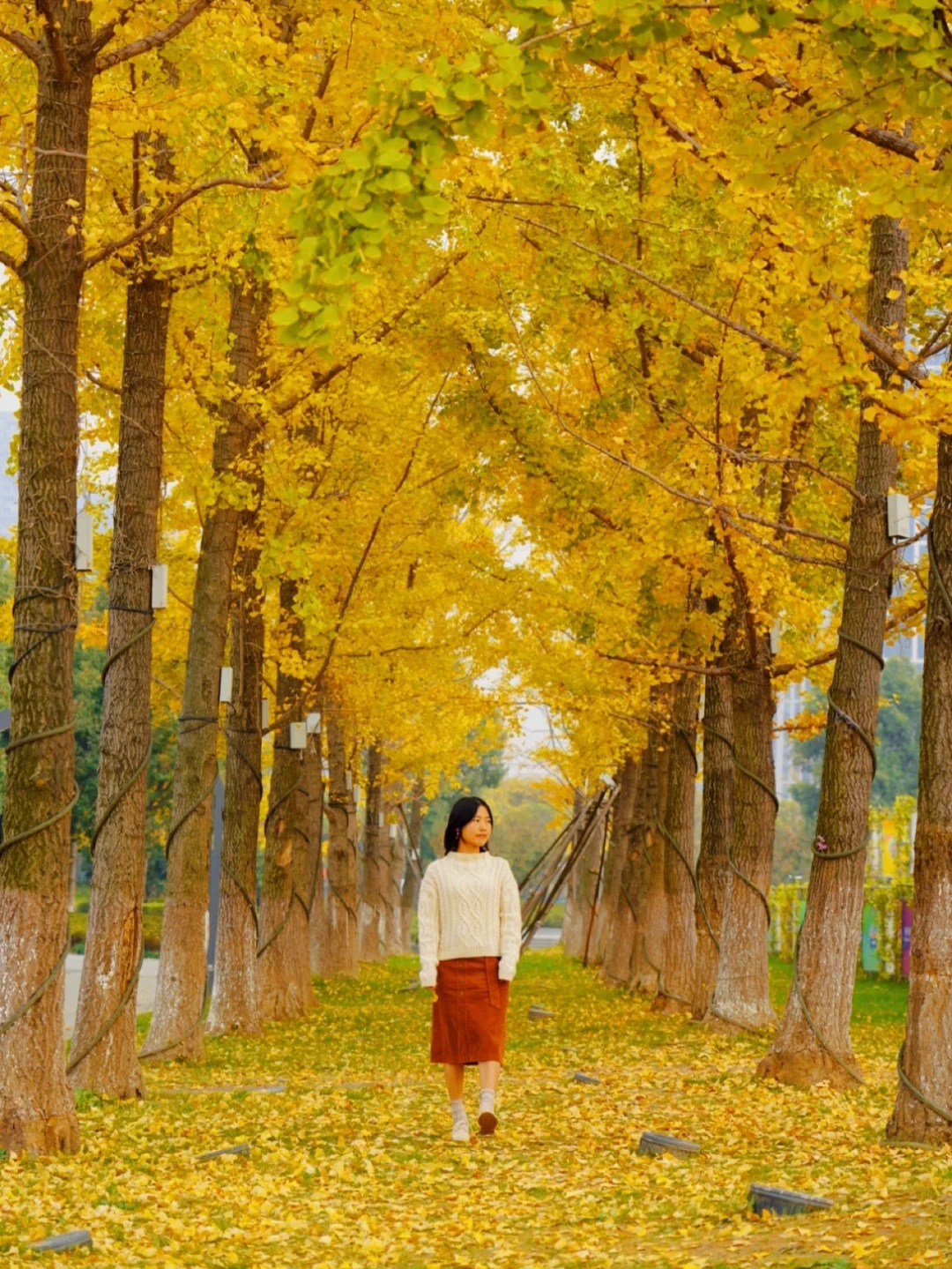 叶落知秋,霜落知寒, 属于银杏的时节才刚刚开始。 绚烂金黄的银杏 把秋日气息渲染到了极致, 给这座深秋的城市 增添了一抹温暖的亮色。 杭州有太多可以赏银杏林的地方 今天就发现一个市区里的小众银杏林 钱江世纪公园里,还有小火车可以坐~ 地址:🚇地铁2号线坐到钱江世纪公园,B/C口出来走几步就看到了,两排金黄的银杏林太美了,分分钟拍出秋景大片!
