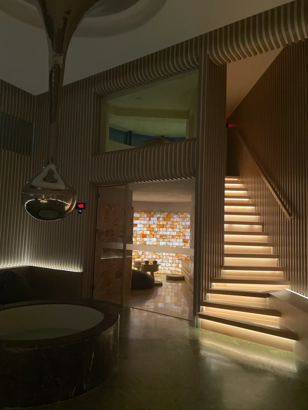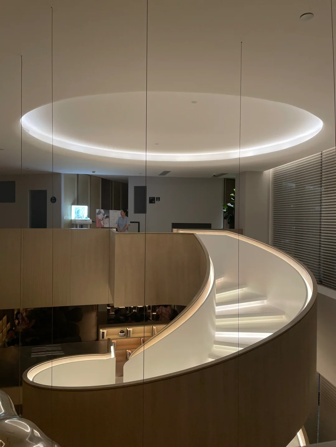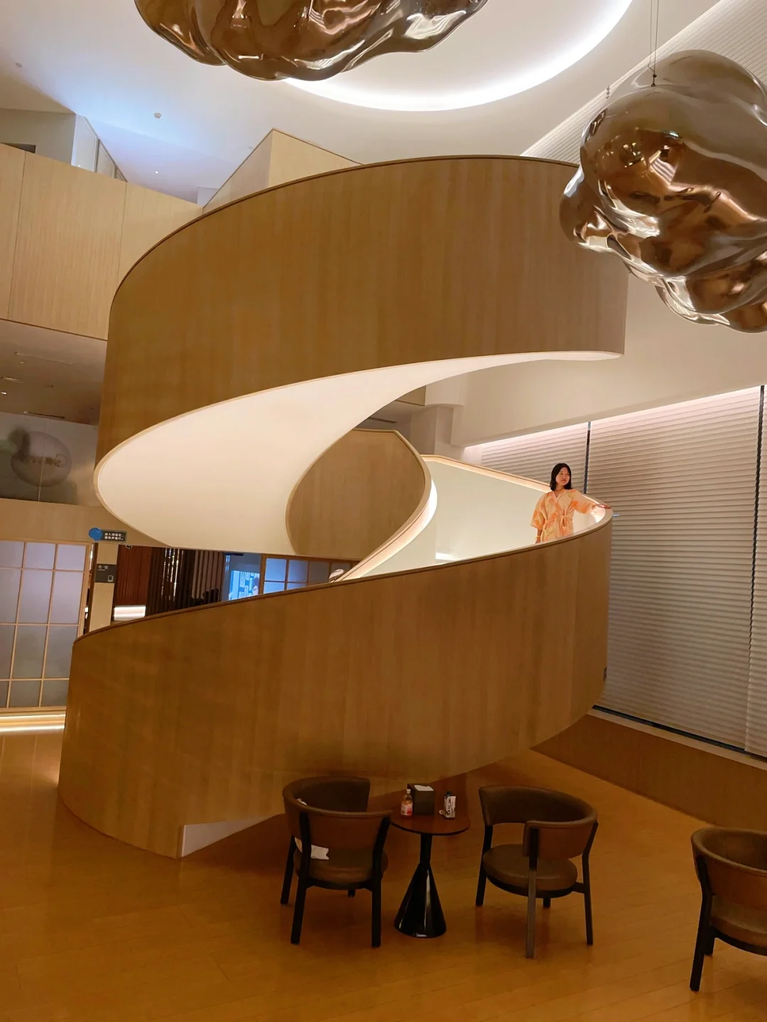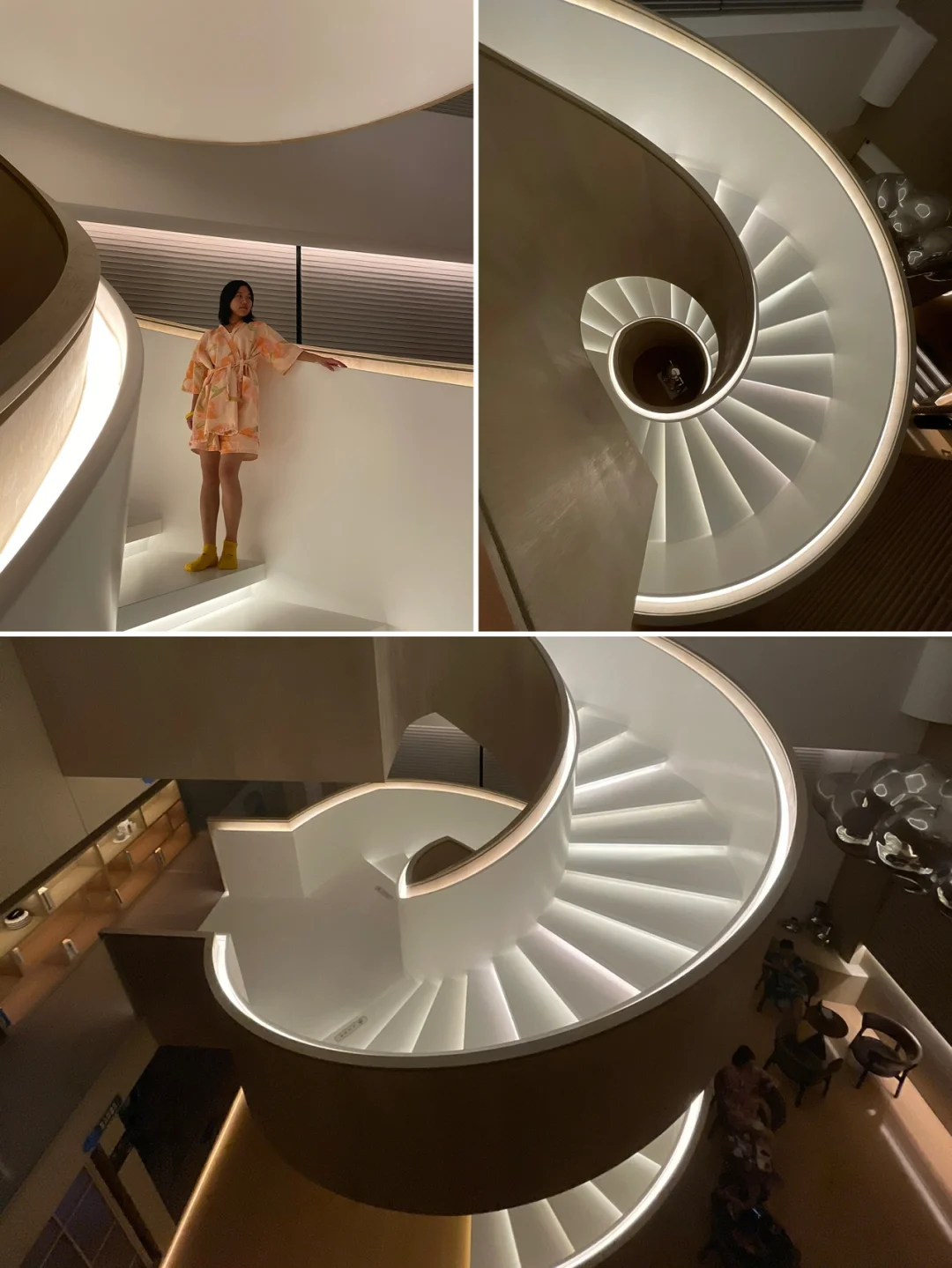 开放式的设计,网红ins风,白色旋转楼梯太梦幻了,很适合拍照打卡。进门之后会发个手环和夹子,鞋子存前台,再发一套浴衣和防滑袜,全程穿着防滑袜溜达。