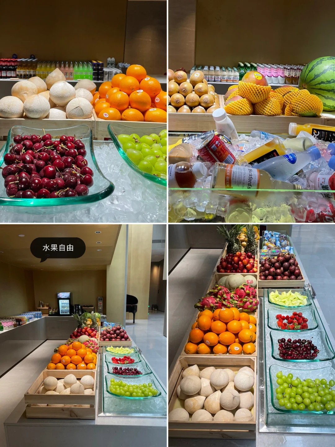 ▪️水果吧台20+种,有我最爱的泰国进口山竹、车厘子🍒、椰皇、红颜草莓🍓、晴王青提,火箭筒小苹果、金果、火龙果等,还有哈根达斯冰激凌🍦、马卡龙甜品等等!