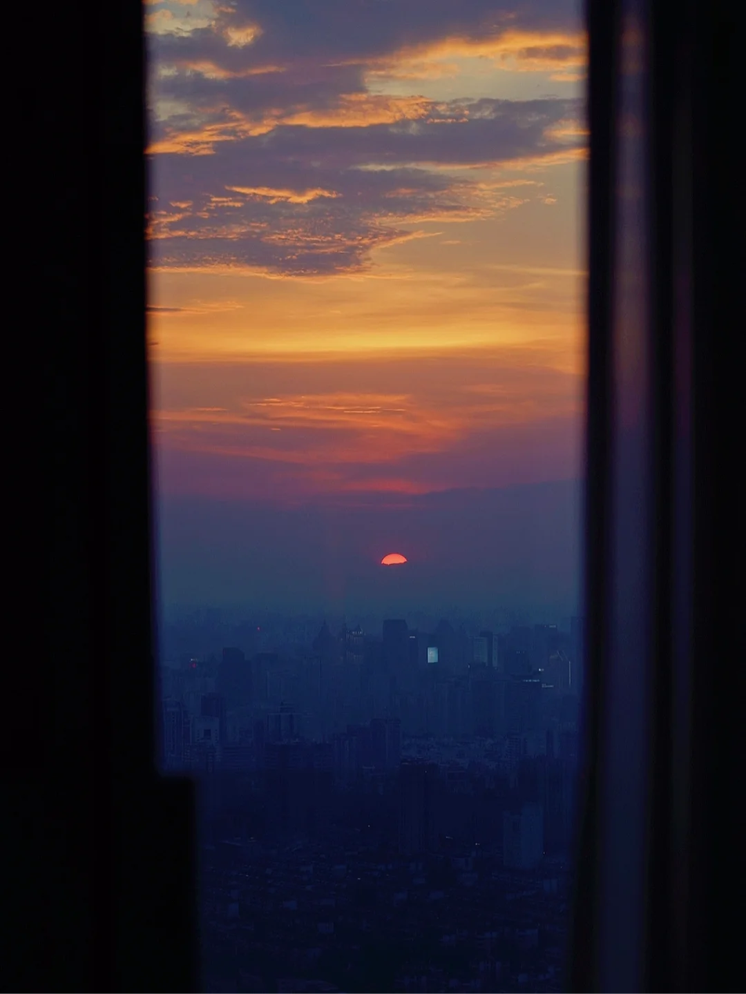 傍晚时分的天边如梦如幻,宛若置身曼哈顿!