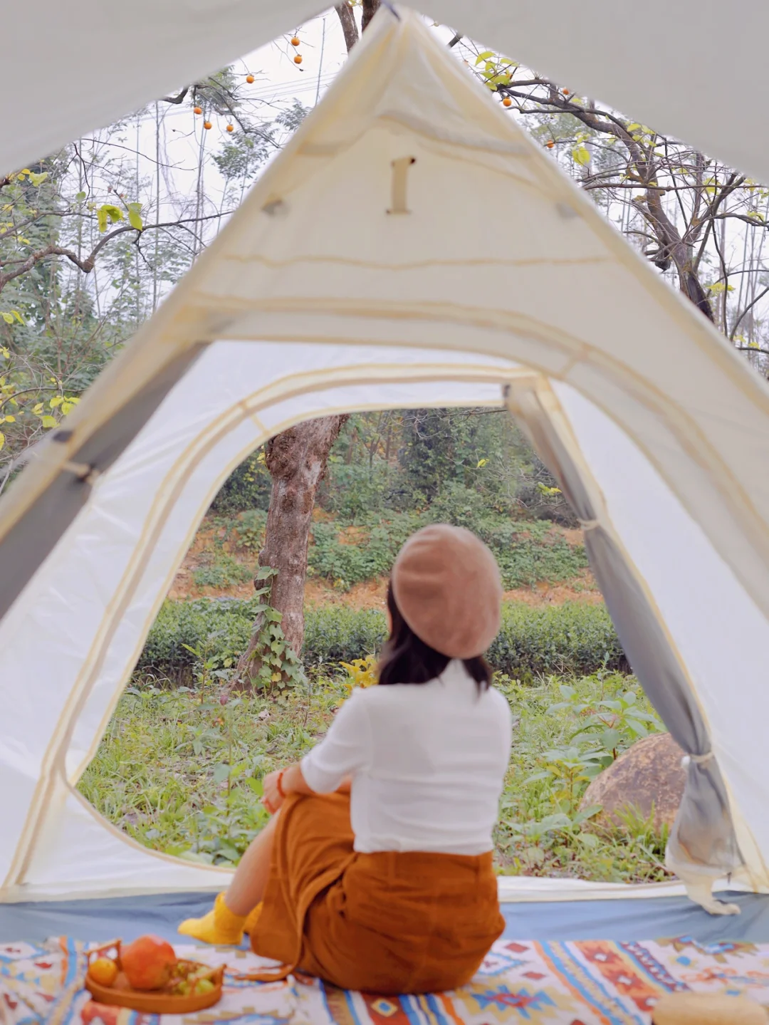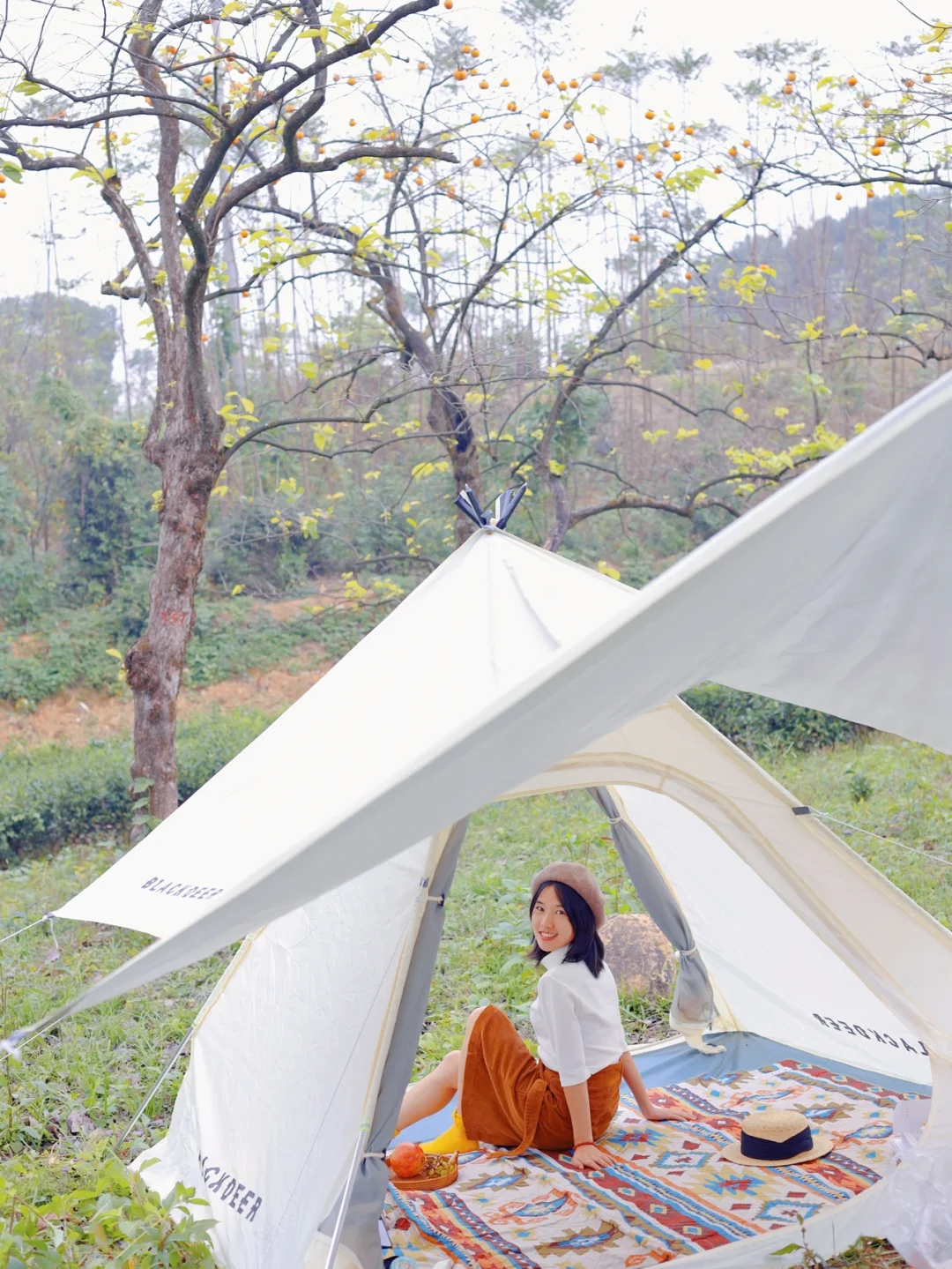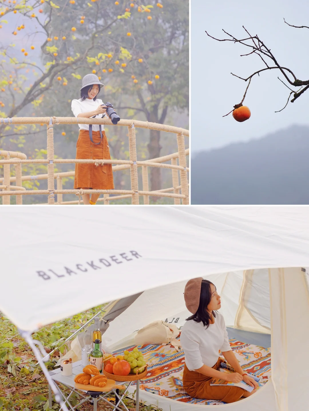 周末,不妨邀上朋友,一起去百年柿林露营野餐吧。