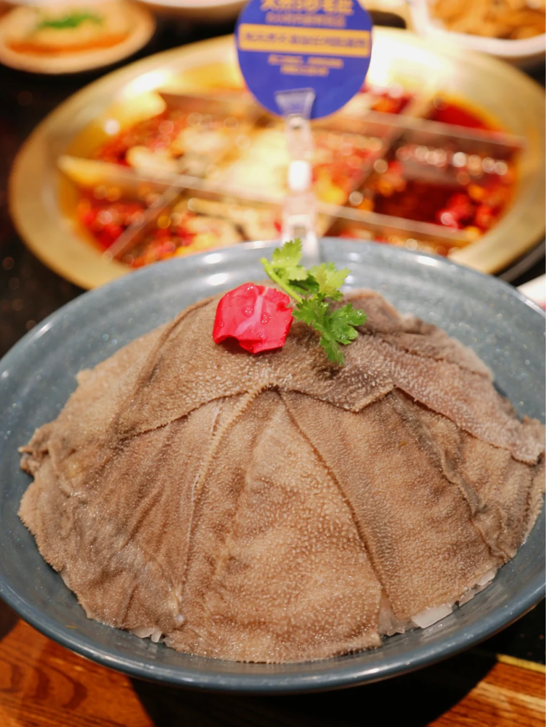 巴掌大🉐️极品水牛毛肚,颜色富有层次,肉刺颗粒鲜明。毛肚七上八下这样就能吃到最脆嫩的它!小毛刺沾满了香香辣辣的红油,又脆又香!