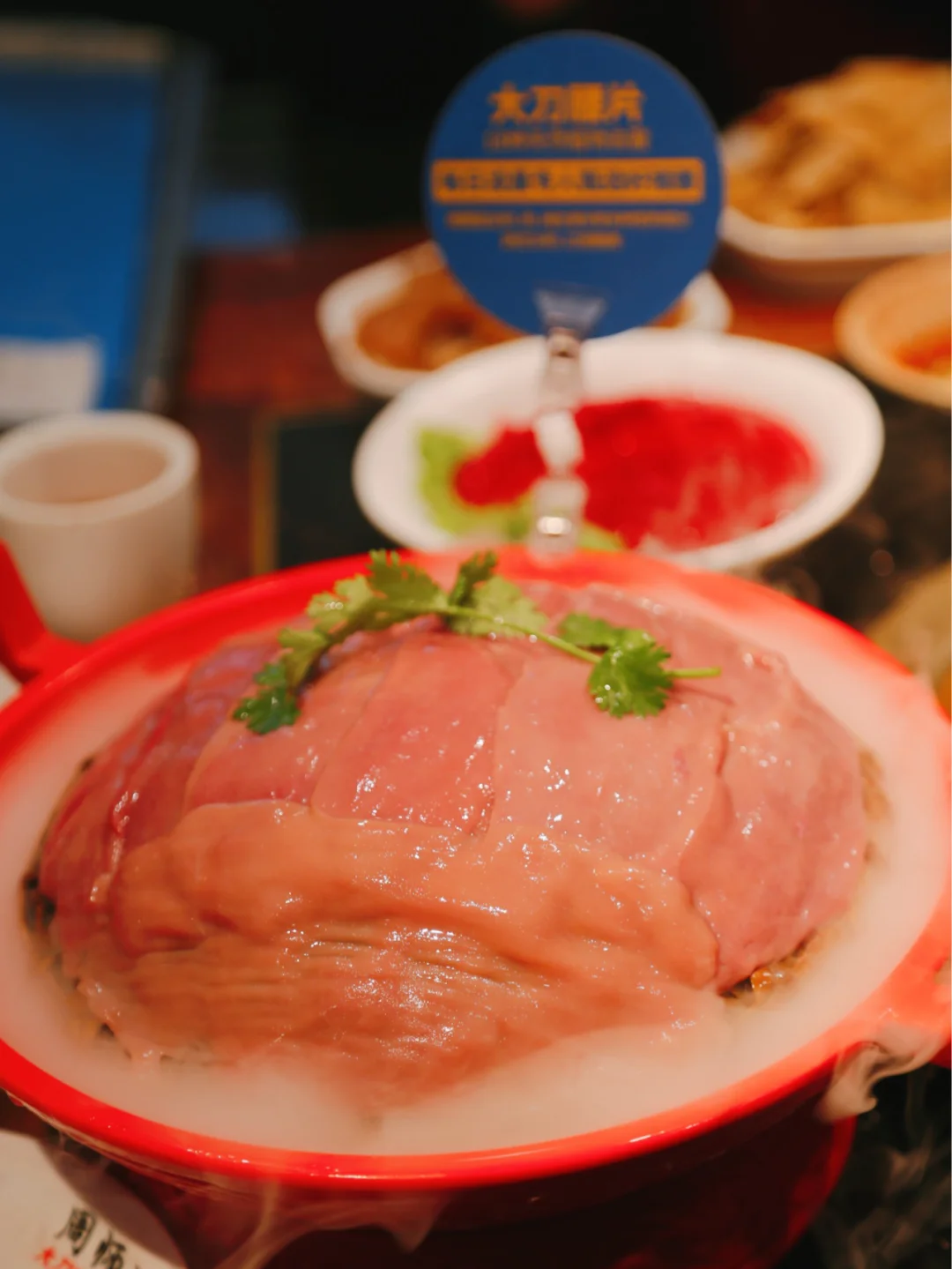 仙气腾腾的大刀腰片,每天由屠宰场新鲜专供,腰片的薄嫩,是最考验片腰子者的功底的,周师兄的大刀腰片切🉐️很厚,颜色红润有巴掌那么大,大片下锅涮一涮,烫得微微蜷曲,蘸上秘制干碟,入口片片脆嫩,没有一点腥味。