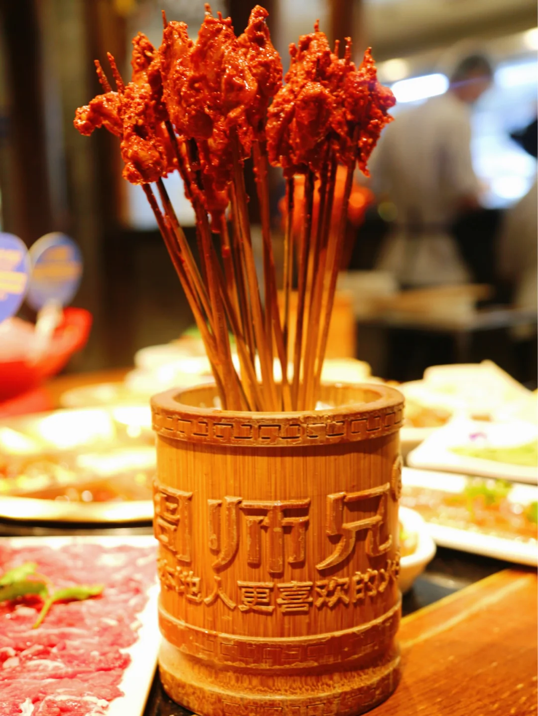 周师兄还有专门的提示,教你把握时间涮各种菜品,瞬间也能变成火锅专家!明档厨房菜品是看得见的新鲜‼️