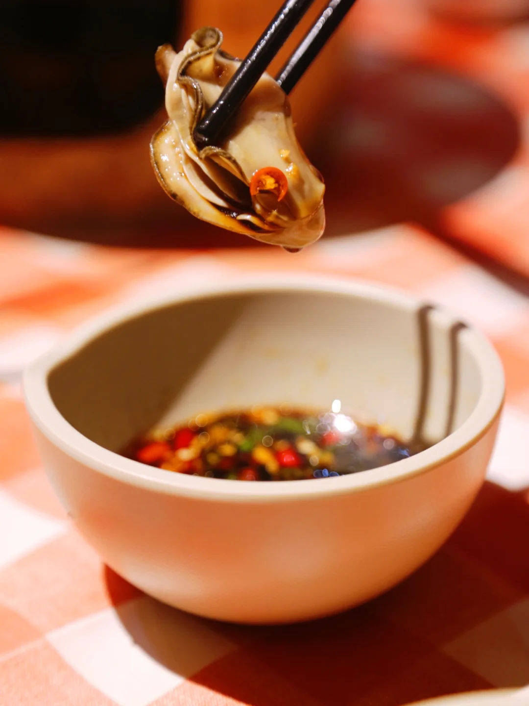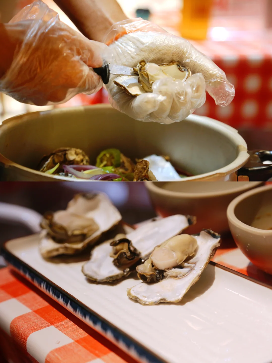 推荐高压锅生蚝,用最原始的做法,吃到生蚝最鲜美的味道,只加葱、姜、柠檬这些简单的调料,上桌时仪式感🈵️🈵️!小哥哥会帮忙把生蚝一个个撬开,生蚝超大只,蘸上店里自制的蘸碟,超好吃!